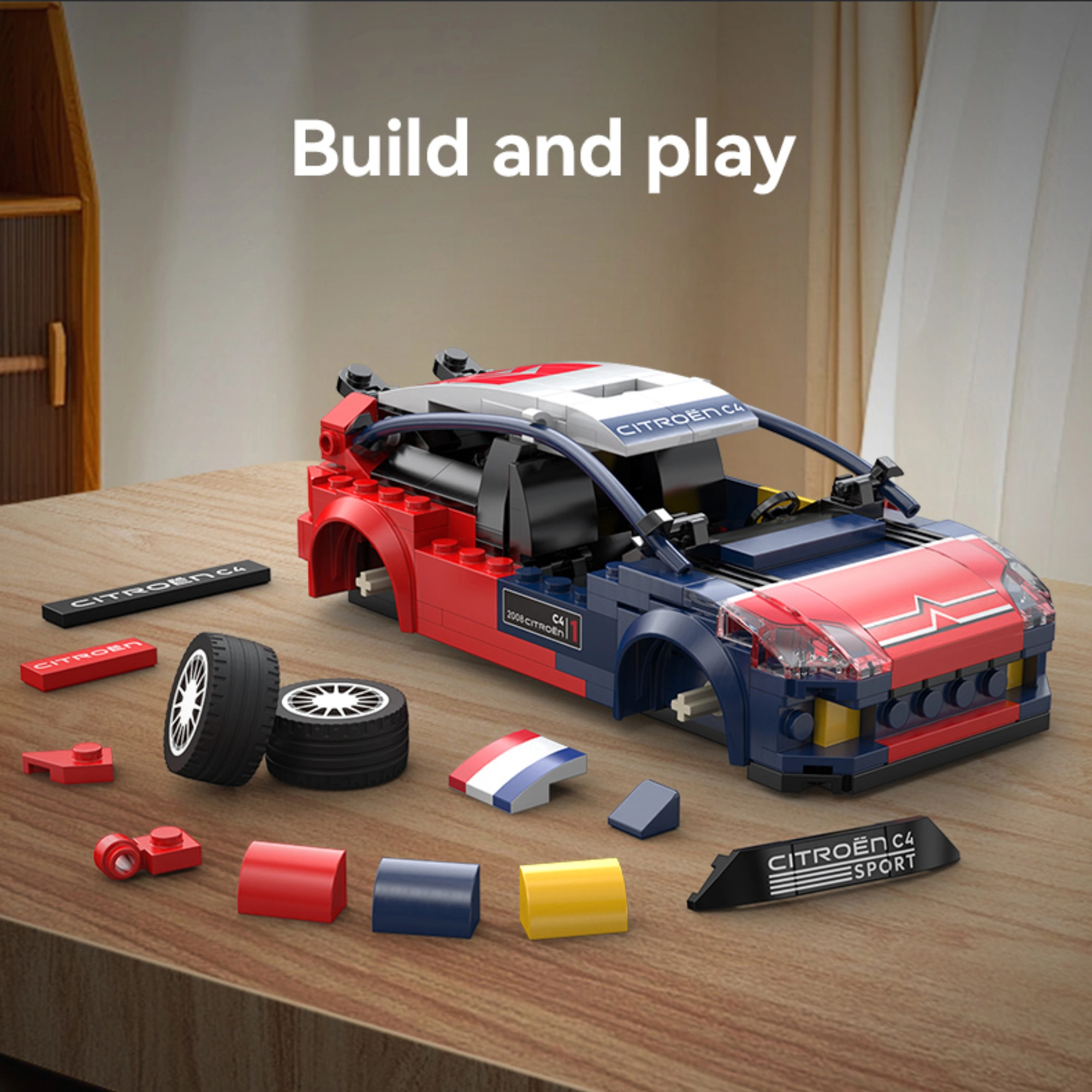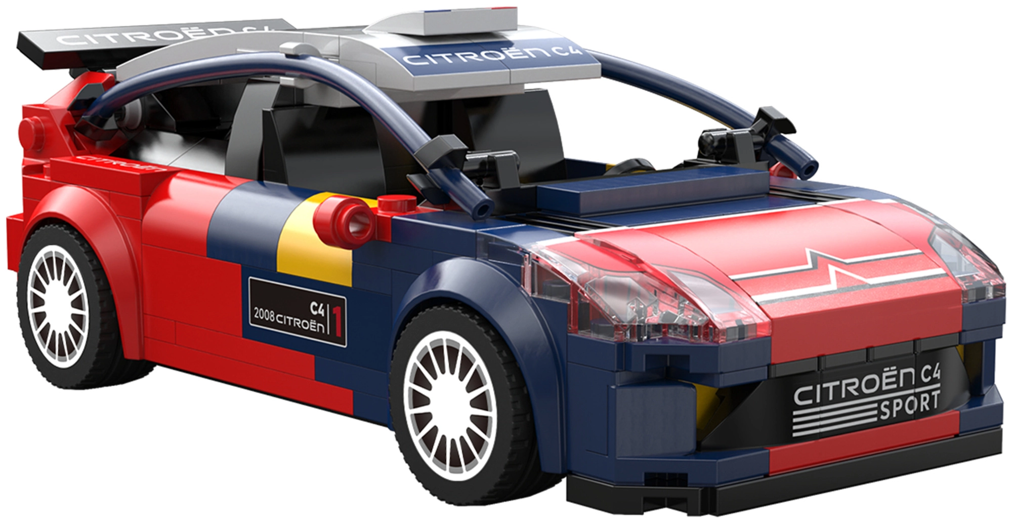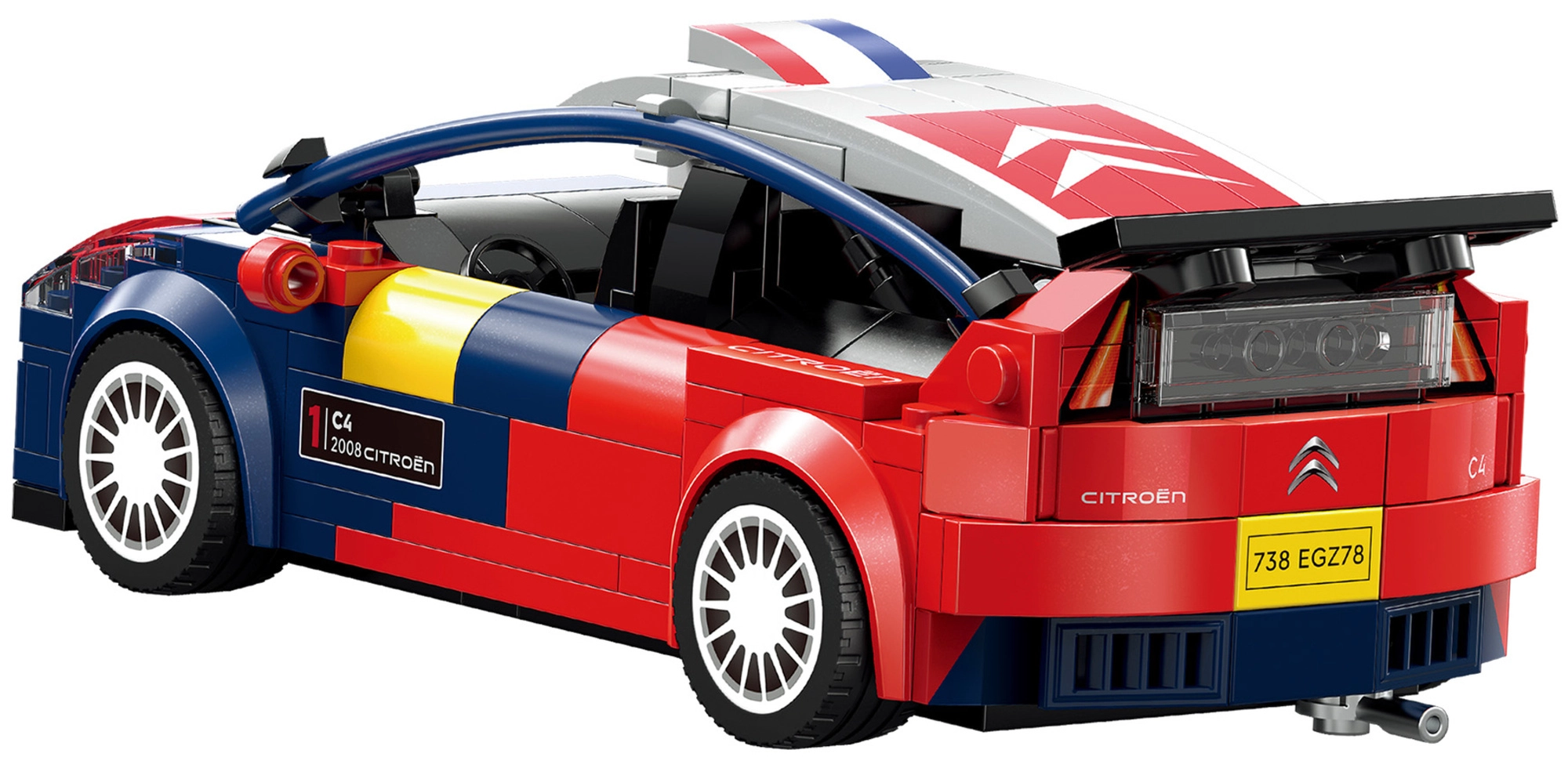 Сглобете емблематичния рали автомобил CITROËN C4 WRC в мащаб 1:24 от конструктора CaDA с 296 елемента. Моделът впечатлява с богати реалистични детайли, плавно движение на 4 колела и атрактивна синьо‑червена каросерия. Страхотен като подарък, експонат за колекция и за забавно съвместно строене.