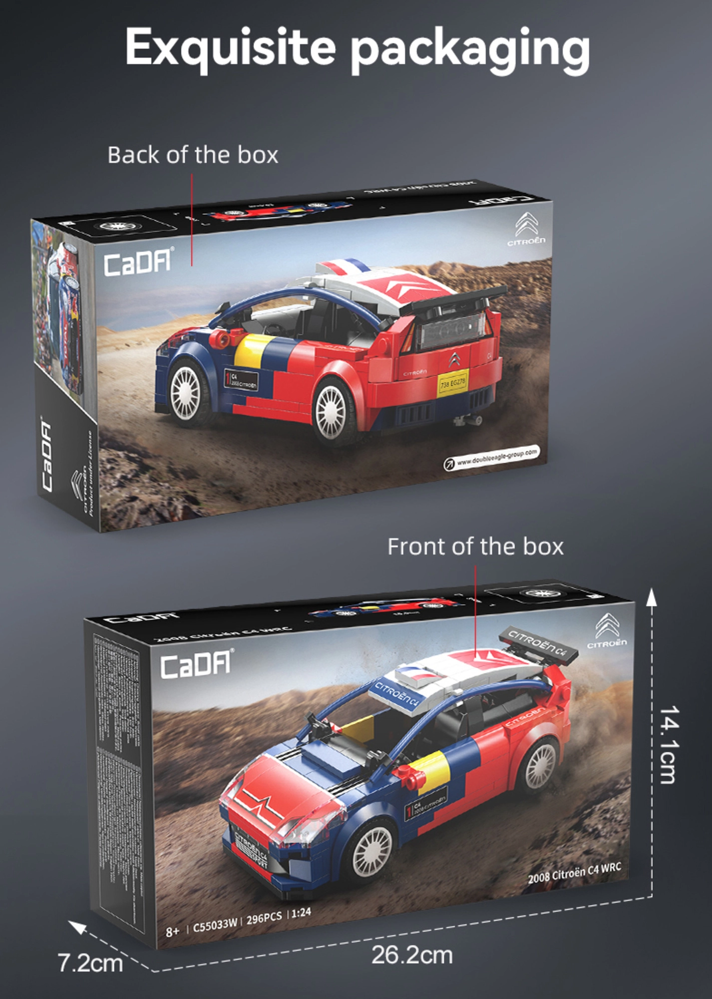 Насладете се на прецизно сглобяване и впечатляващия вид на лицензирания модел CITROËN C4 WRC. Конструкторът CaDA предлага балансирана комбинация от лесно строене и отлично качество, резултатът е статичен модел с плавно движение, готов за витрината и игриви разходки по равна повърхност.