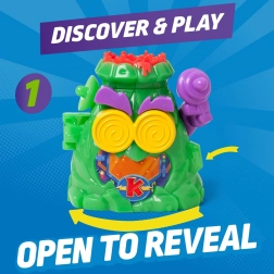 Влезте във вулканичното леговище на злодея Professor K от серията Kazoom Power и овладейте неговата скрита тайна лаборатория. Отворете „лицето“ на вулкана, активирайте капаните и стартирайте забавата с механичните функции. Този комплект носи интерактивна игра, напрежение и много възможности да създавате собствени истории в Kaboom City.