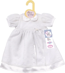 Елегантна бяла рокличка за кукли с размер 39–46 см от колекцията DOLLY MODA на марката ZAPF CREATION. Има класическа кройка с яка, къси набрани ръкавки и фина бродерия. Лесното обличане е осигурено от закопчаване с велкро. В комплекта е включена пластмасова закачалка. Идеална за тържествени игри – кръщенета, семейни празници и фотосесии.