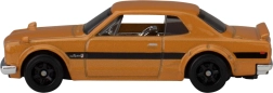 Открийте емблематичното спортно купе в райе оранжево изпълнение – Hot Wheels Nissan Skyline 1971 HT 2000 GT‑R. Прецизната изработка в мащаб 1:64 пресъздава вярно линиите на каросерията, хромираните детайли и типичния заден спойлер. Количката е идеална както за състезателни писти, така и за колекция.
