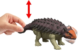 Влезте в света на филма JURASSIC WORLD с реалистичната фигура Анкилозавър от серията Rebirth. Голямата фигура с височина около 24 см предлага рев, активиран чрез опашката, щракащи челюсти с движение на предните крайници и въртяща се опашка за мощни атаки. Детайлна изработка, текстурирани „бронирани“ люспи и свързване с приложението чрез проследяващ код гарантират часове екшън забавление.