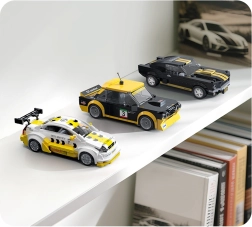След завършване моделът е статичен и изглежда чудесно на рафт, но предлага и функционални колела за плавно придвижване. Компактните размери 14,6 × 5,9 × 6,4 cm пасват на всяка витрина, а сглобяването е по силите на деца от 8 години. Елементите са съвместими с други комплекти CADA, така че можете да разширите колекцията си.