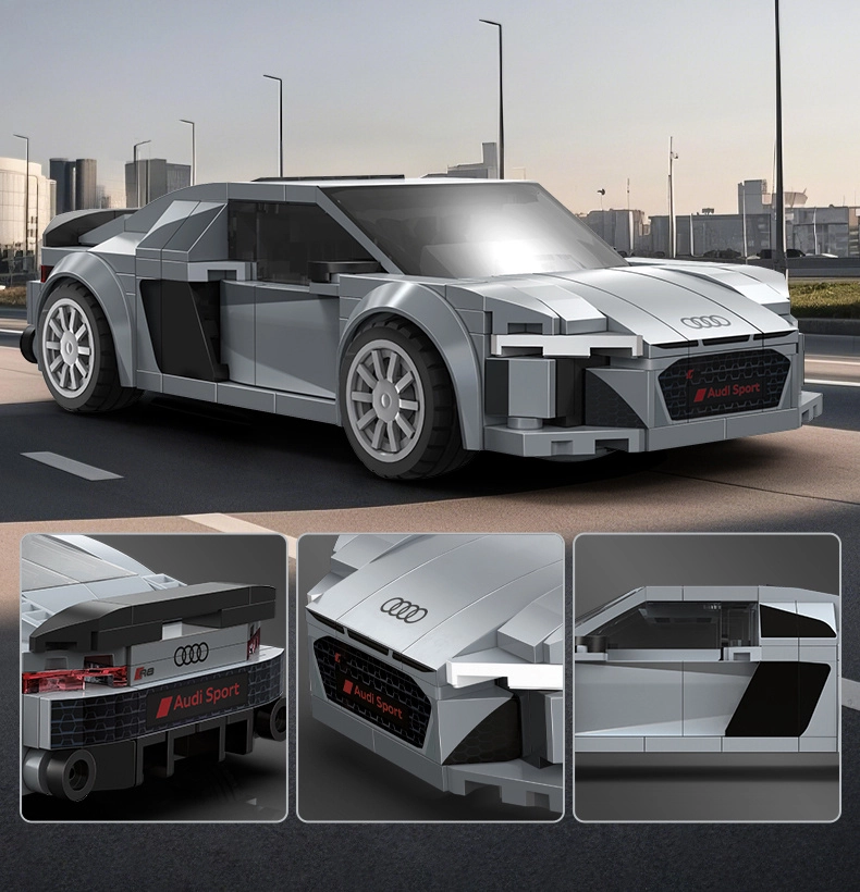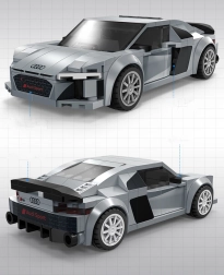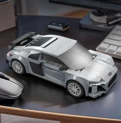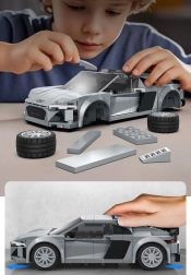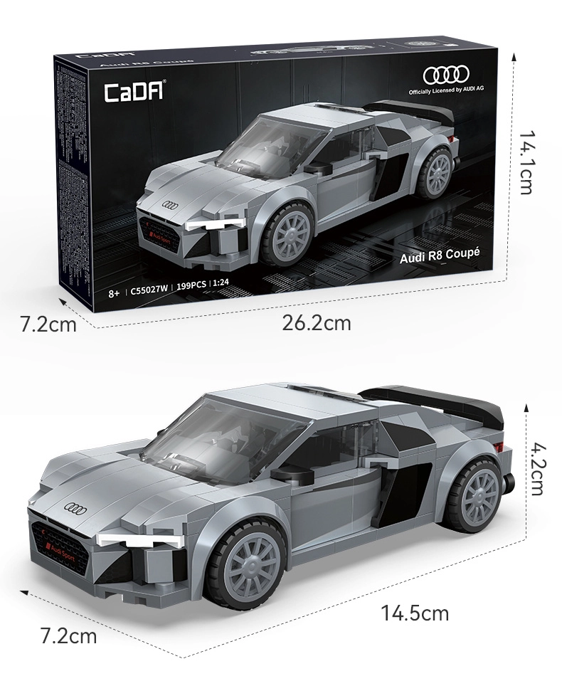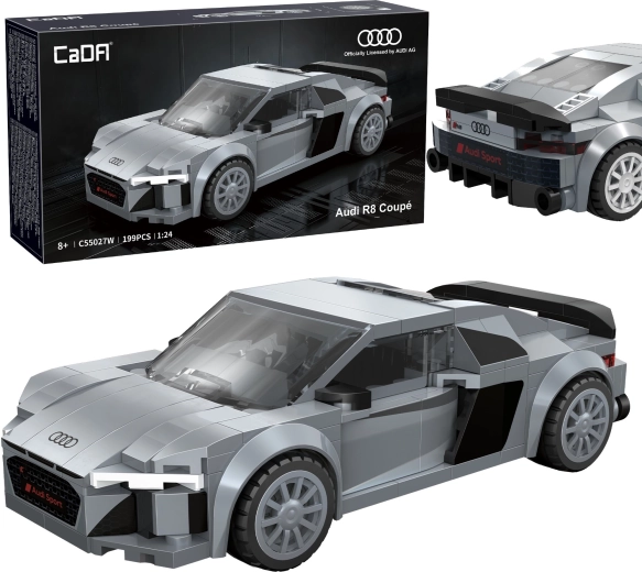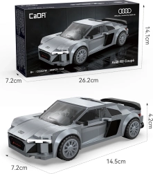 Този лицензиран конструктор CaDA вярно възпроизвежда агресивните линии на спортния автомобил AUDI R8 Coupé (2019). Благодарение на качествените елементи и прецизните принтове без стикери изпъкват реалистичната предница с черна решетка, двойните въздухозаборници и чистите странични контури. След сглобяване моделът е приблизително 14,5 × 7,2 × 4,2 cm и стои отлично на рафт или бюро.