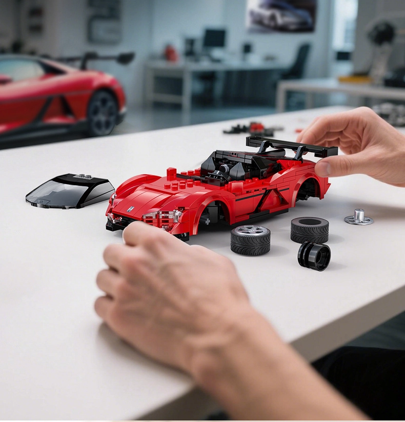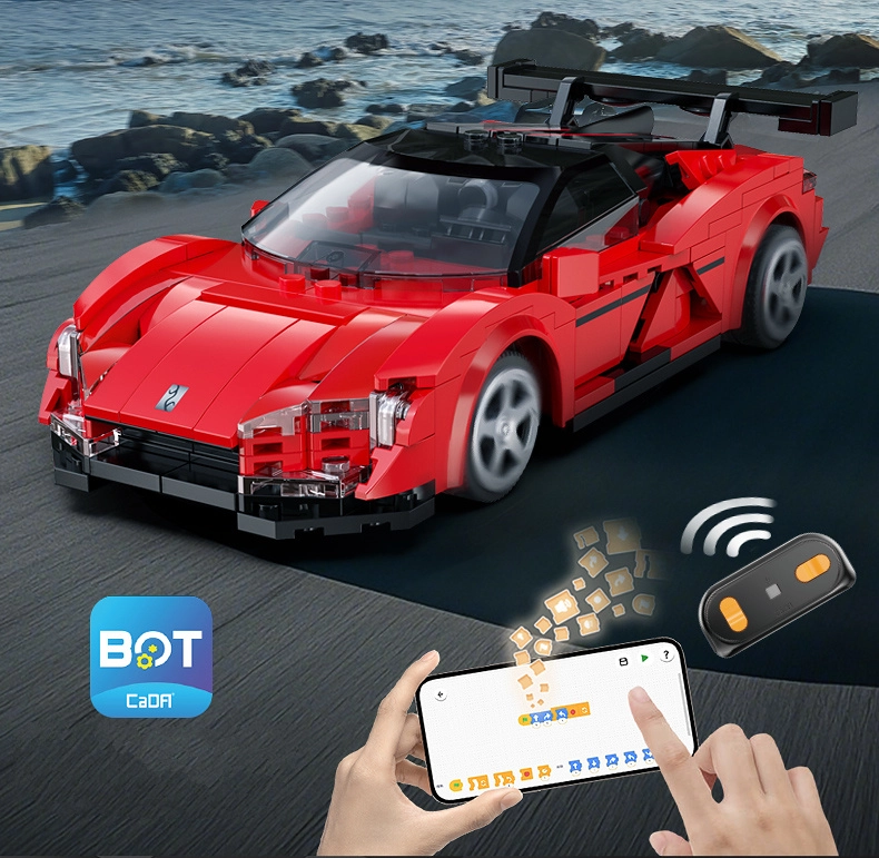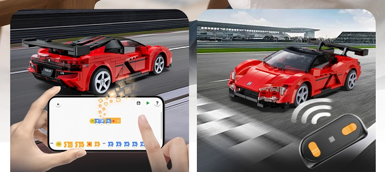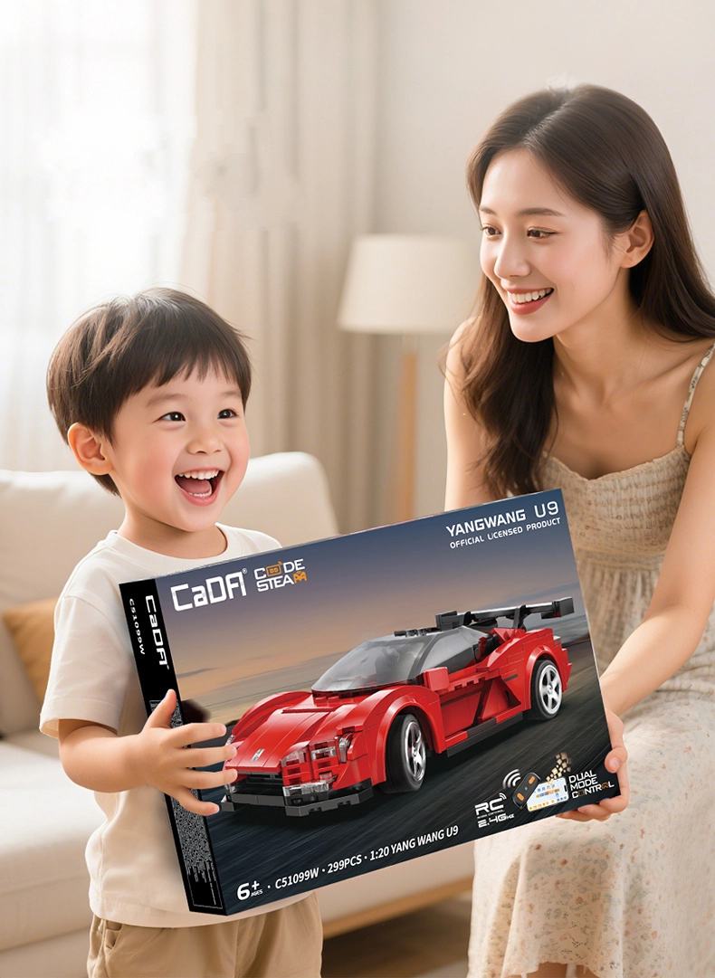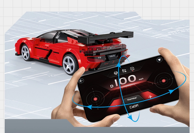 Насладете се на комбинацията от забавно сглобяване и модерно RC управление с конструктора CaDA YANGWANG U9. След сглобяване получавате детайлен модел на състезателен автомобил в мащаб 1:20 с размери 20 × 9 × 5,2 см, който изглежда чудесно на рафта и се движи още по-добре. Каросерията в червен цвят с печати вместо стикери вярно копира външния вид на истински спортен автомобил.