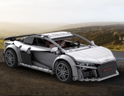 Прецизно изработено купе на AUDI R8 с печати вместо стикери, детайлни фарове, решетка и спортно крило за автентичен вид както на рафта, така и по време на движение.