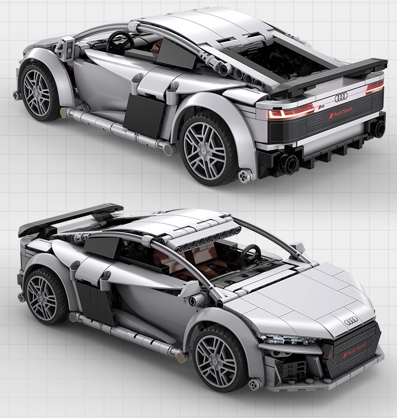 RC конструкторът CaDA AUDI R8 Coupé съчетава удоволствието от създаването и модерните технологии. След сглобяване получавате детайлен модел с размери 28 × 13,5 × 9 cm, който вярно следва линиите на оригинала в елегантно сиво. Благодарение на официалния лиценз ще се насладите на автентични форми на каросерията, печати вместо стикери и детайлен интериор.