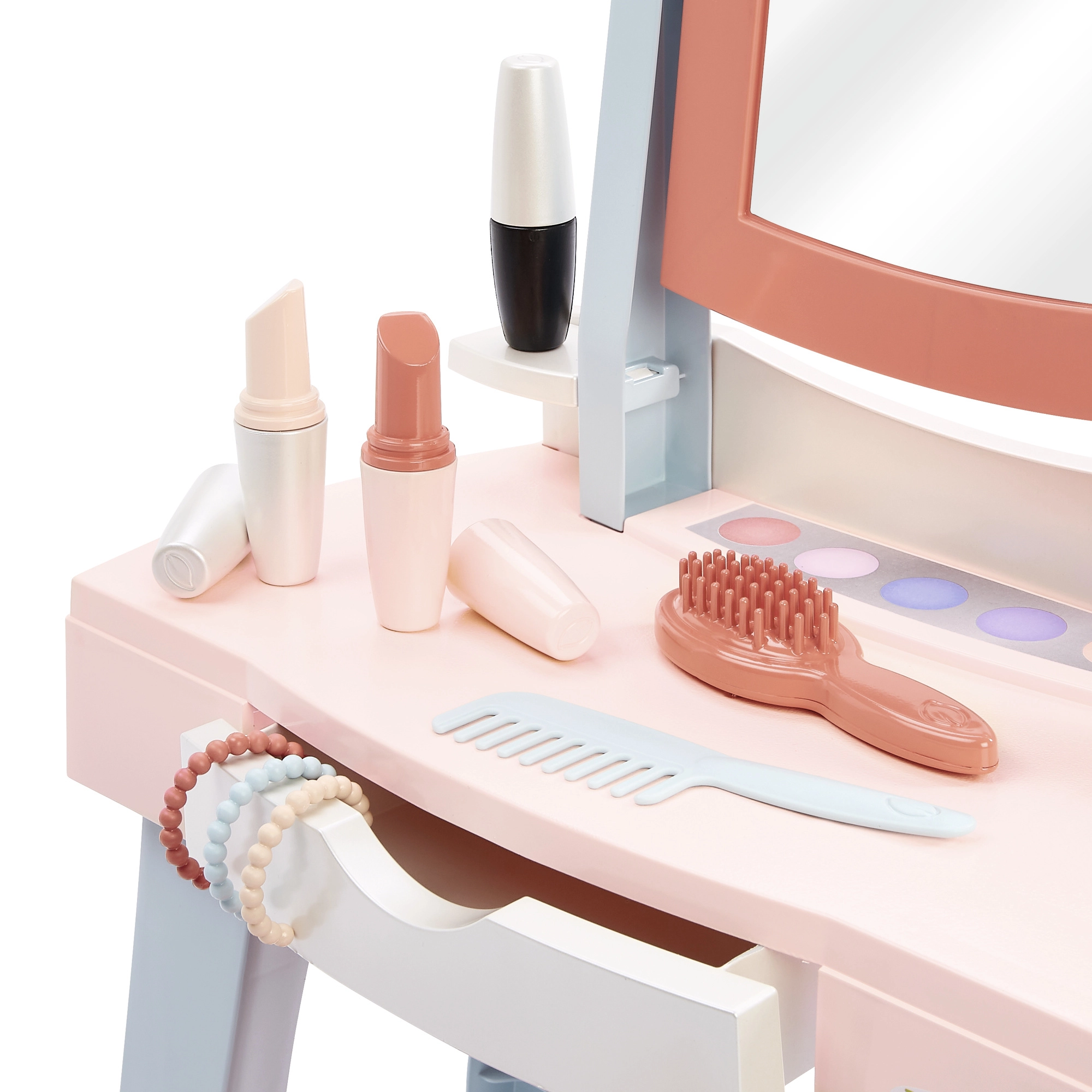 Тоалетката Mademoiselle дава на децата собствен кът за красота с огледало, масичка и удобна седалка. Богатият комплект от аксесоари – от гребен и четка, през детски сешоар до „грим“ – подпомага ролева игра и въображение, като същевременно учи на подреденост благодарение на интегрираното чекмедже.