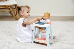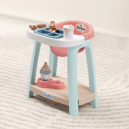 Стабилното високо столче с поднос позволява на децата удобно да „хранят“ куклата и да имитират истински хранителни ритуали.