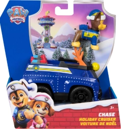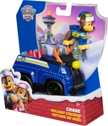 Детайлен син автомобил с коледни елементи и подвижни колела. Фигурката на Чейс със зимна шапка седи директно в кокпита и е готова за действие.