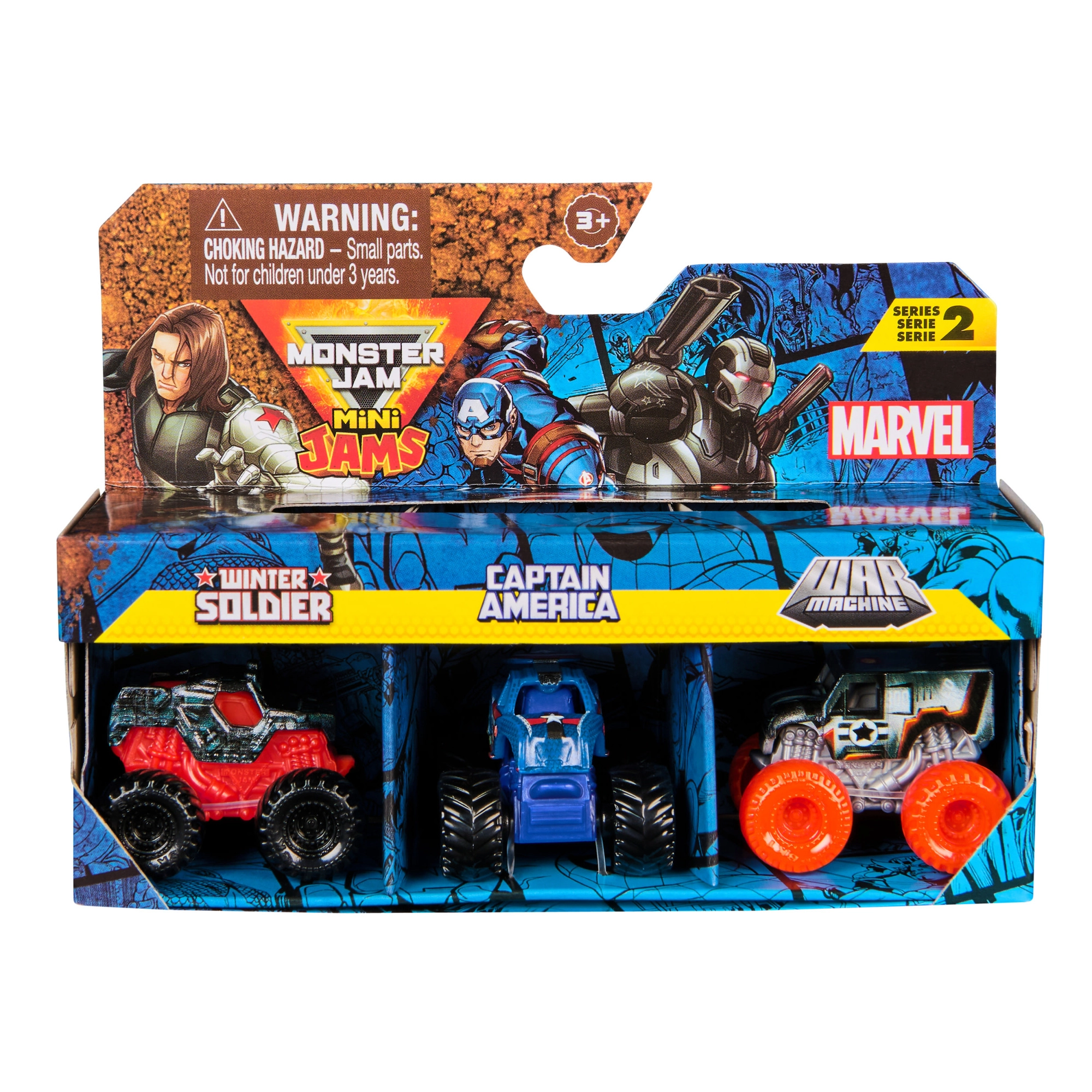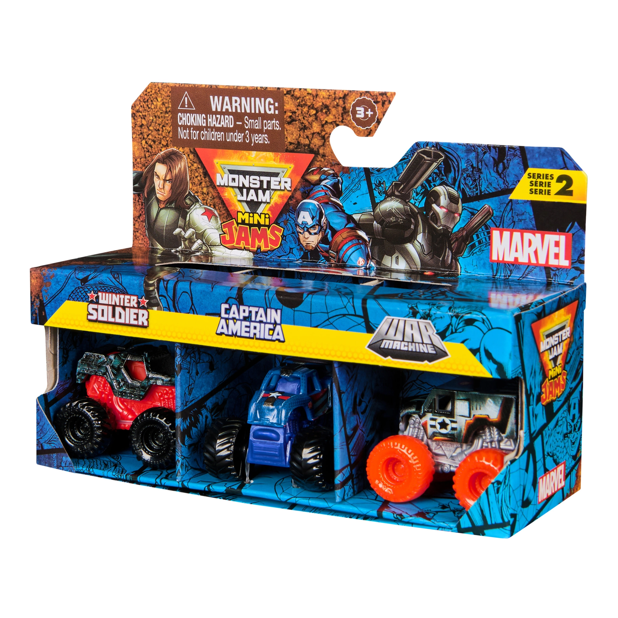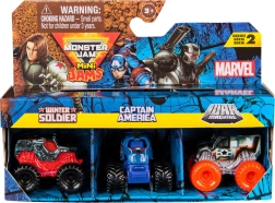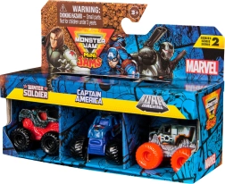 Открийте адреналиновата комбинация на света на MONSTER JAM и супергероите на MARVEL! Този комплект от три мини монстър камиона в мащаб 1:87 предлага детайлна изработка, здрава конструкция и емблематични дизайни, вдъхновени от героите Winter Soldier, Captain America и War Machine. Идеален за колекционери и за детска креативна игра, пълна с каскадни трикове и състезания.