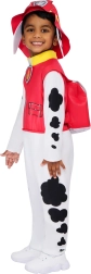 Превърнете своя малък герой в безстрашното пожарникарско кученце МАРШАЛ! Костюмът вярно имитира черно-белите „далматински“ лапички и червената пожарникарска жилетка с емблема, джобове и принтове на цип. Мекият материал е удобен за целодневно носене и се облича лесно.