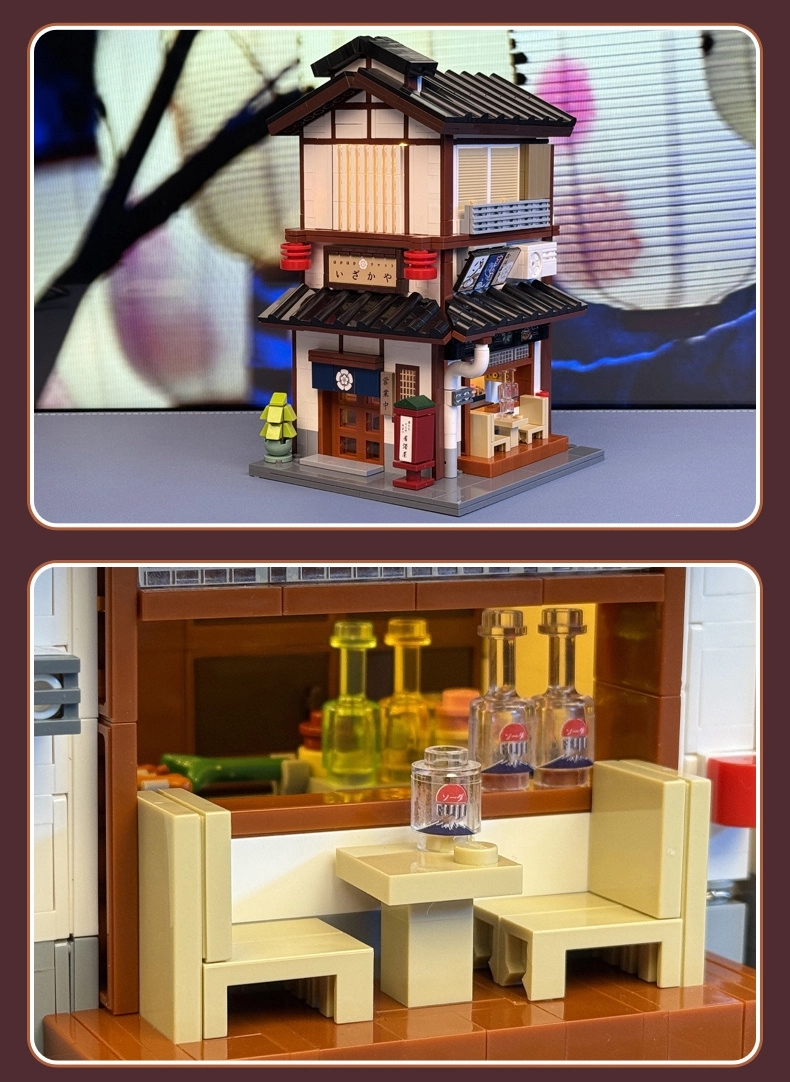 Открийте чара на традиционната японска архитектура в този уникален конструктор CaDA. Реалистичните хартиени фенери, дървени детайли, бар и прецизно изпипани елементи на интериора създават неповторима атмосфера. Благодарение на отварящата се странична стена лесно надниквате вътре, без да разглобявате модела.