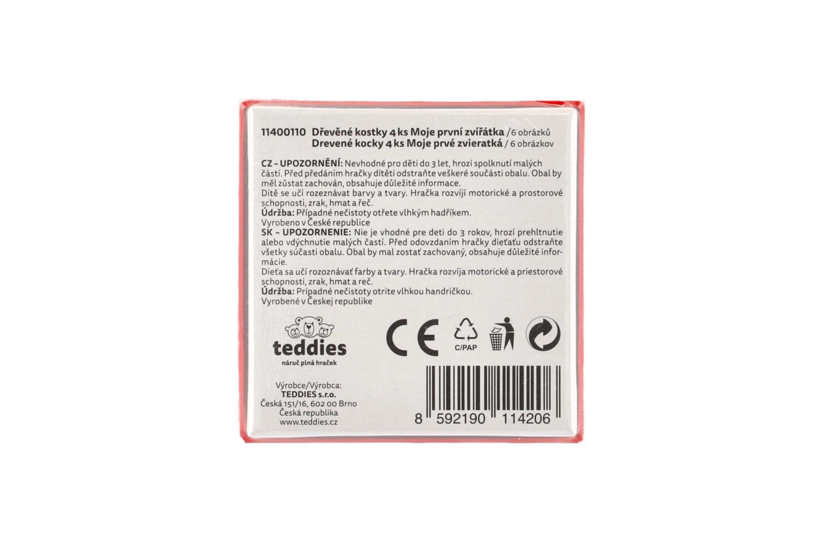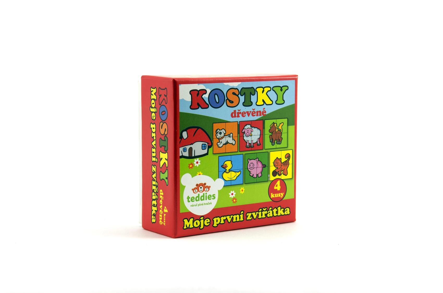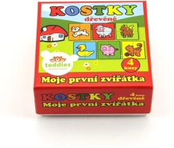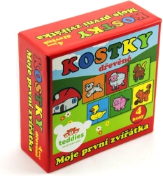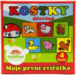Открийте забавлението и ученето с дървените картинни кубчета TEDDIES. Комплектът съдържа 4 здрави кубчета, от които можете да подредите до 6 различни картинки на домашни животни. Играчката развива фината моторика, логическото мислене и фантазията, а благодарение на издръжливата дървена изработка издържа на ежедневна игра. Произведено в ЧР.