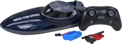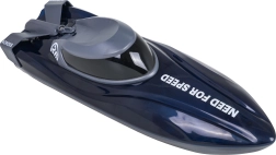 Стилната синя RC лодка носи динамично каране и страхотни светлинни ефекти по водната повърхност. Благодарение на здравия ABS корпус и стабилната 2,4 GHz връзка изпълнява прецизни маневри във всички посоки, включително завъртане на 360°. Предпазният ключ активира лодката едва след потапяне във вода.