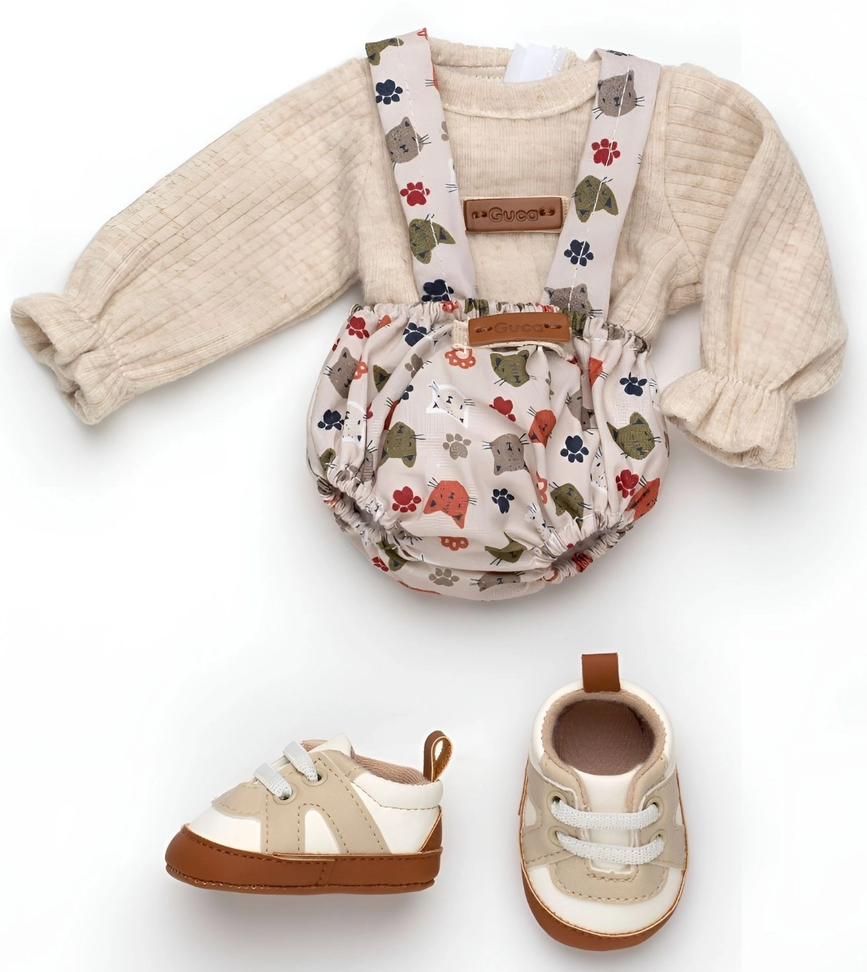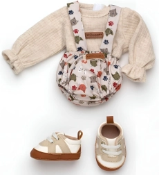 Очарователен 3‑частов комплект дрешки за маймунче бебе REBORN с размер 32 см, включва стилни елементи и удобни обувчици. Приляга перфектно, щади детската кожа и е идеален за креативна игра. Ръчно изработен в Испания с внимание към качеството и детайла. Пълен аутфит, ръчна изработка, нежни материали, лесно обличане.