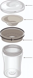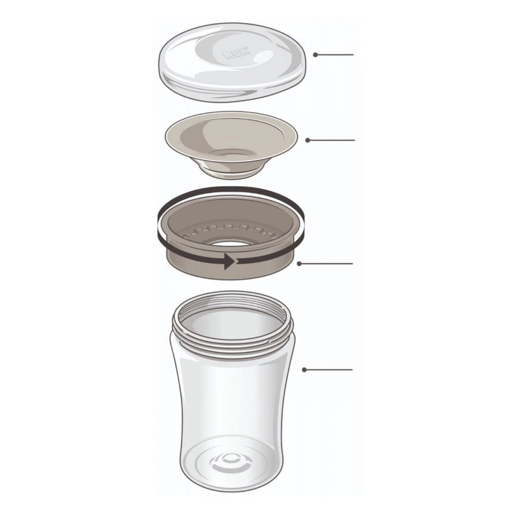 Чашата се състои само от три части, затова се разглобява и почиства много лесно, и е подходяща за съдомиялна. Материалите PP и силикон не съдържат BPA и отговарят на стандарта EN 14350. Съвместимостта с линията NUK Easy Learning осигурява лесна подмяна на части при нужда.