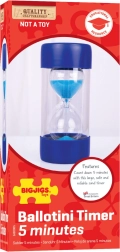 Този голям пясъчен часовник е надежден помощник за ежедневния режим – отмерва около 5 минути и подпомага концентрацията при задачи, игра и почивка. Вътрешният стъклен съд е защитен с здрав пластмасов корпус, който повишава издръжливостта и безопасността при използване.