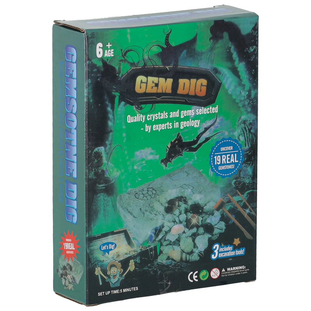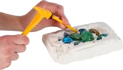 Този забавен STEM сет предлага автентично преживяване на разкопки. Децата постепенно откъртват гипсовия блок и нежно с четчица разкриват цветни камъни и мидички. Включено е всичко необходимо – безопасни пластмасови инструменти и ясен наръчник.