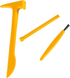 Леките пластмасови инструменти пасват на детската ръка и позволяват удобно и безопасно откъртване и почистване на находките.