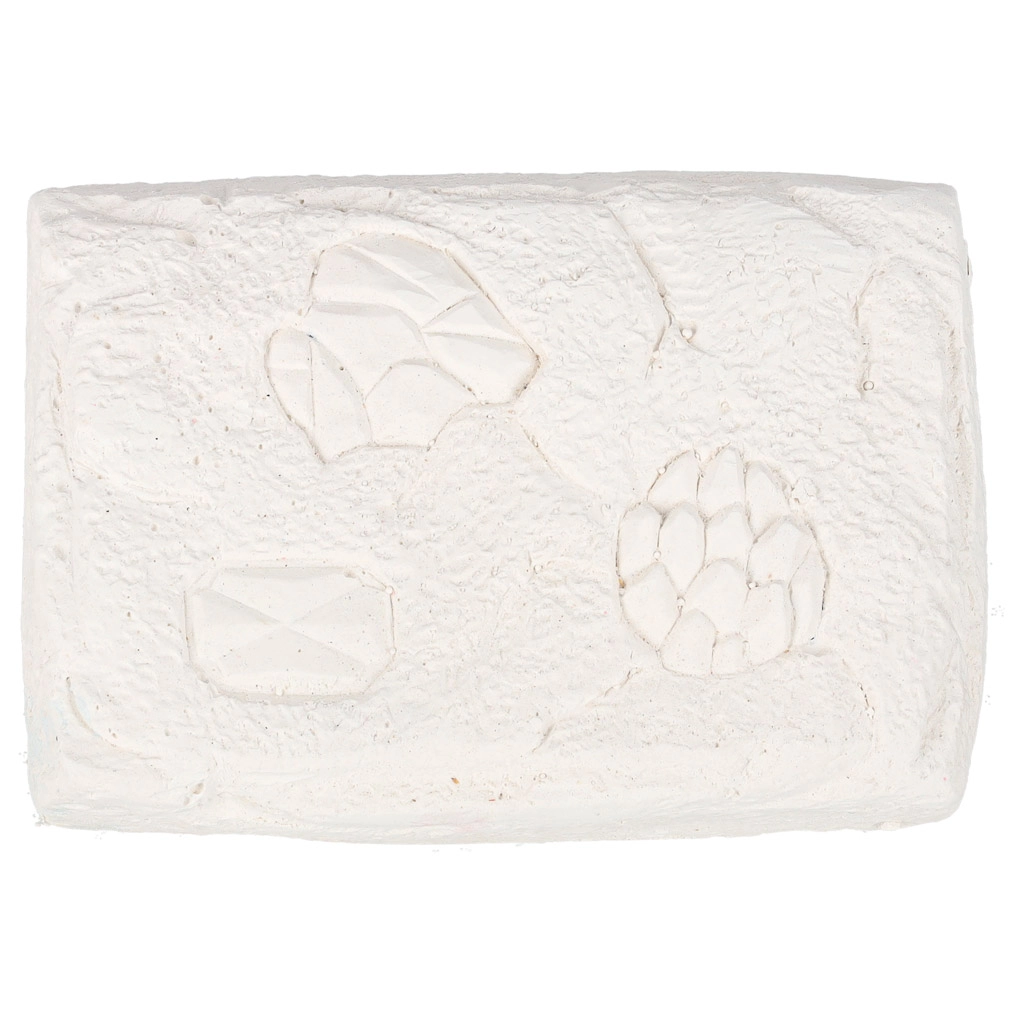 Гипсовият блок крие цветни камъни и мидички. Децата ги разкриват постепенно с длето, чукче и четчица – точно като малки археолози.