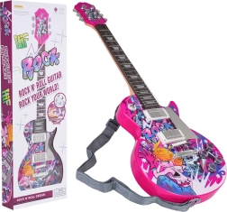 Започнете домашни концерти с тази розова детска електрическа китара! Предлага регулиране на силата на звука, различни ритми, звукови ефекти и 8 готови мелодии. Страхотен избор за малки музиканти от 3 години, който подпомага развитието на ритъма и фината моторика. Включен е ремък за удобно свирене в изправено положение.