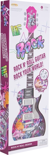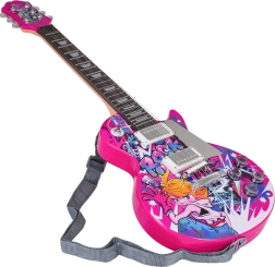 Тази атрактивна розова електрическа китара за деца е проектирана да наподобява истински инструмент и да мотивира децата към първи музикални стъпки. Благодарение на ясните елементи за управление децата лесно избират силата на звука, ритъма и звуковите ефекти, и могат да пуснат 8 предварително зададени мелодии за акомпанимент.