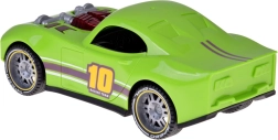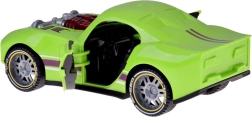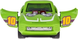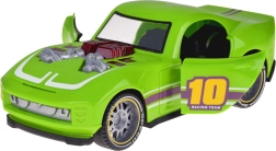 Дайте старт на въображението със състезателната количка, която впечатлява с динамична визия, мигащ червен „двигател“ на капака и звуци на стартиране, ускорение и клаксон. Интерактивното управление с лесно натискане на двигателя дава на децата усещане за истинско шофиране.