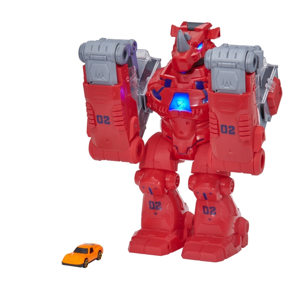 - Светлини и звуци – LED ефект на очите и гърдите, реалистични роботски и „носорожди“ звуци.