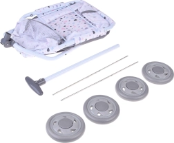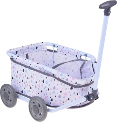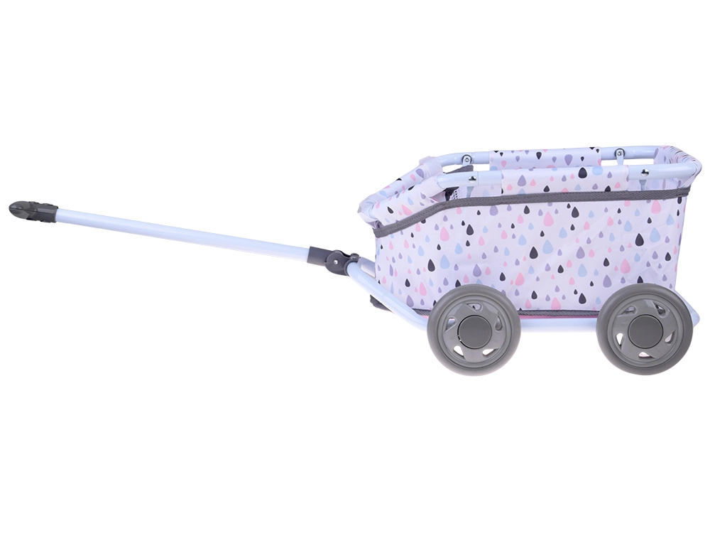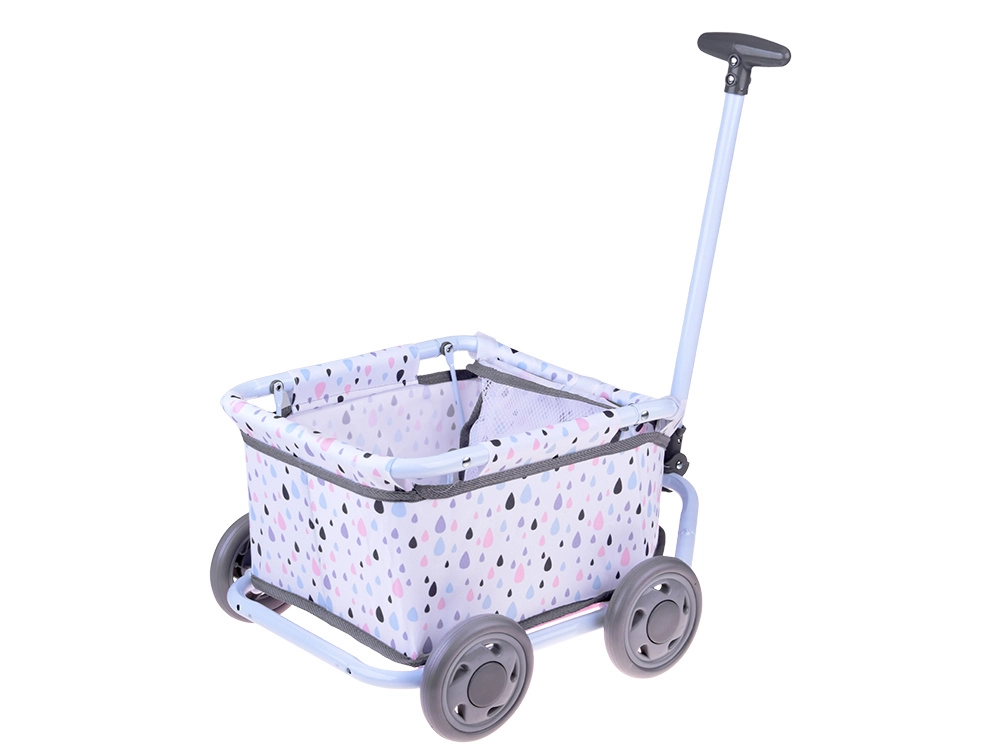 Тази стилна количка с пастелен мотив на капки е идеална за всекидневни игри, разходки из дома и в двора. Леката метална конструкция и меката текстилна кошница осигуряват удобно място за кукла, плюшено животинче и малки аксесоари.