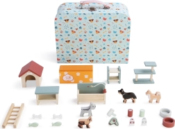 Комплектът включва кученца от различни породи, купички, кокали, рибки, играчки, колиба, легълца, „храна“ и други миниатюрни принадлежности. Благодарение на компактните размери куфарчето е лесно преносимо и е чудесно за екскурзии, посещения и ваканции.