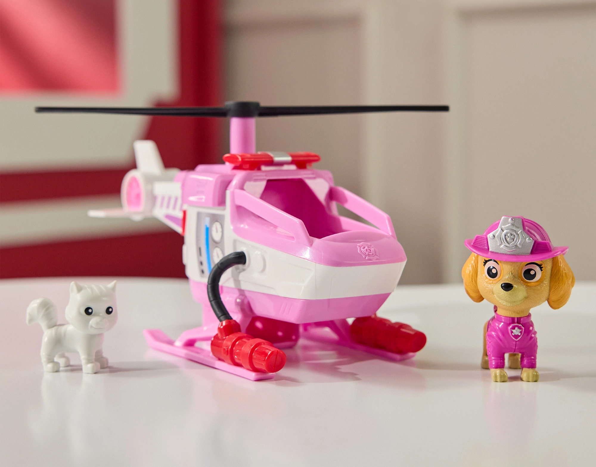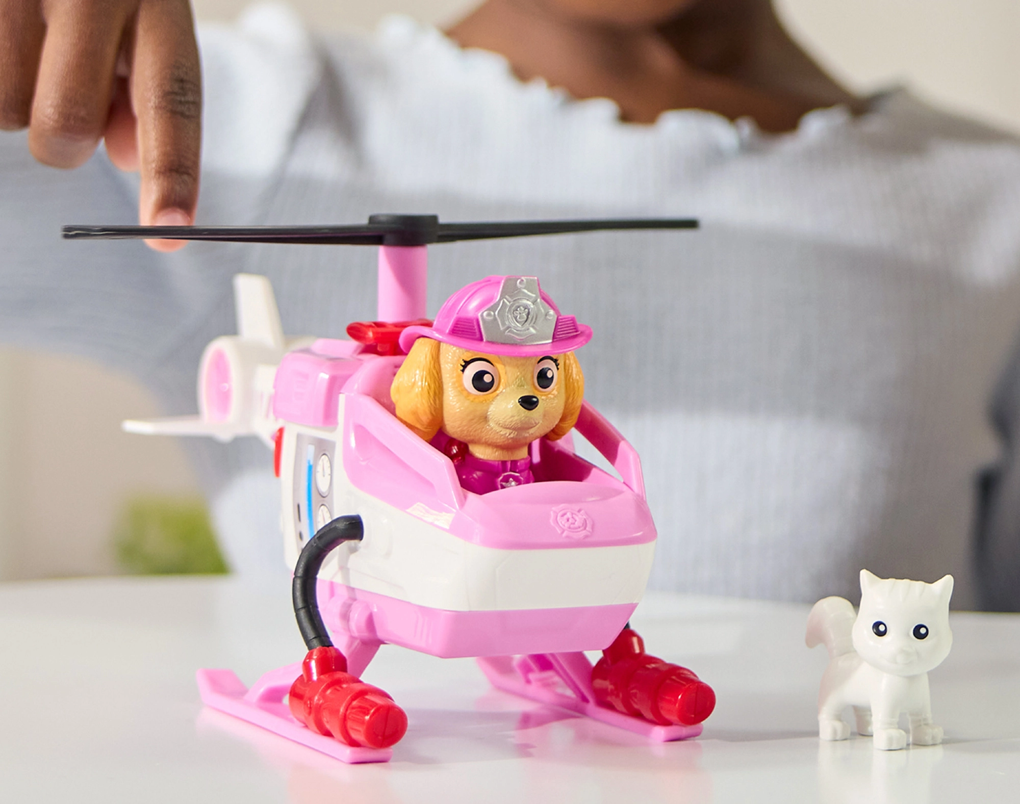 Любимата героиня Скай е готова да излети и да помогне на всички, които имат нужда. Хеликоптерът в емблематичните цветове на PAW Patrol предлага автентични детайли, удобна кабина за фигурката пилот и забавни функции, които насърчават детското въображение.