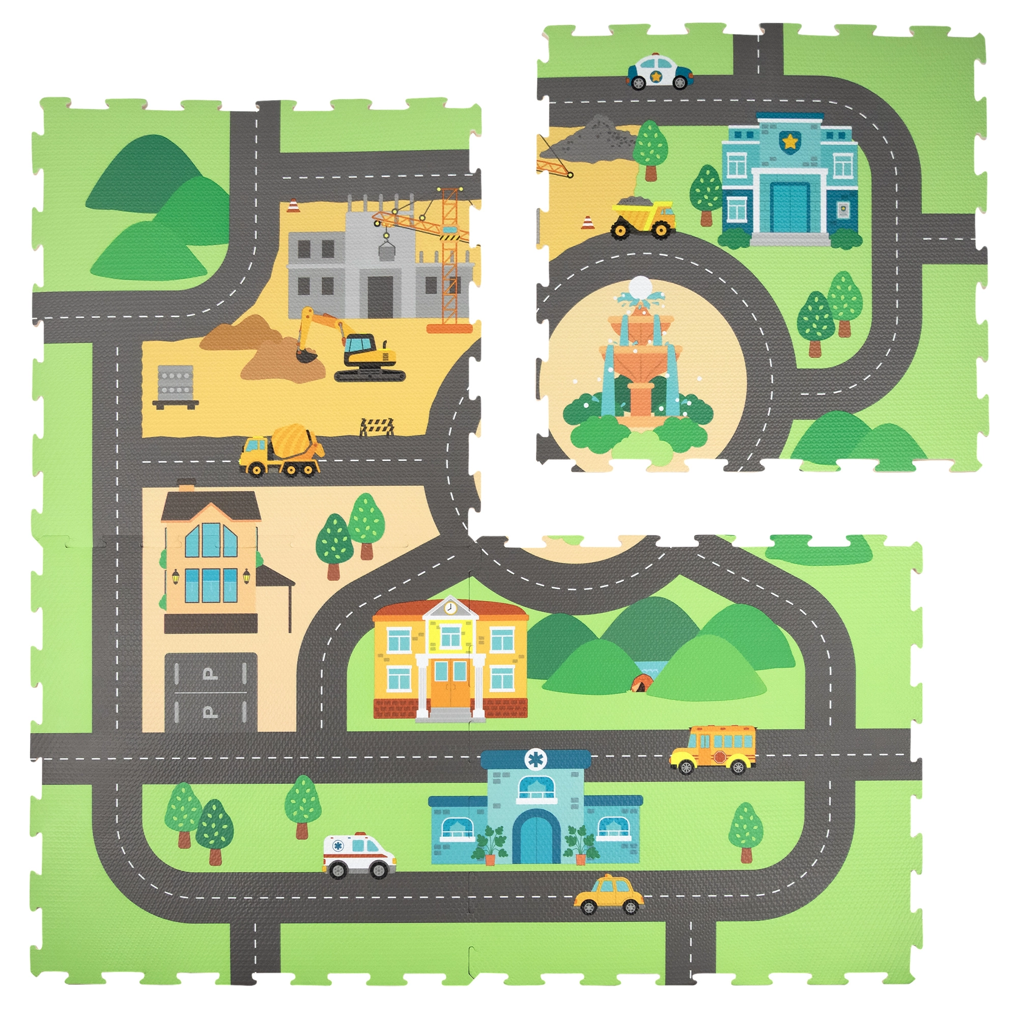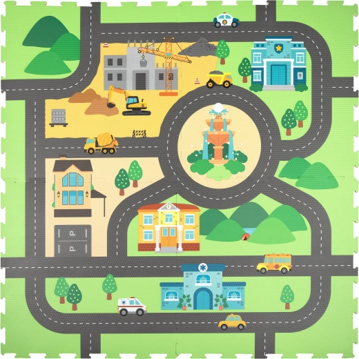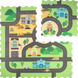 Образователните пяна пъзели HUMBI съчетават учене и игра в едно. Благодарение на отпечатаните пътища и сгради децата лесно създават собствен град, планират маршрути и развиват въображението си. Повърхността е мека, поема удари и предпазва от студ от пода.