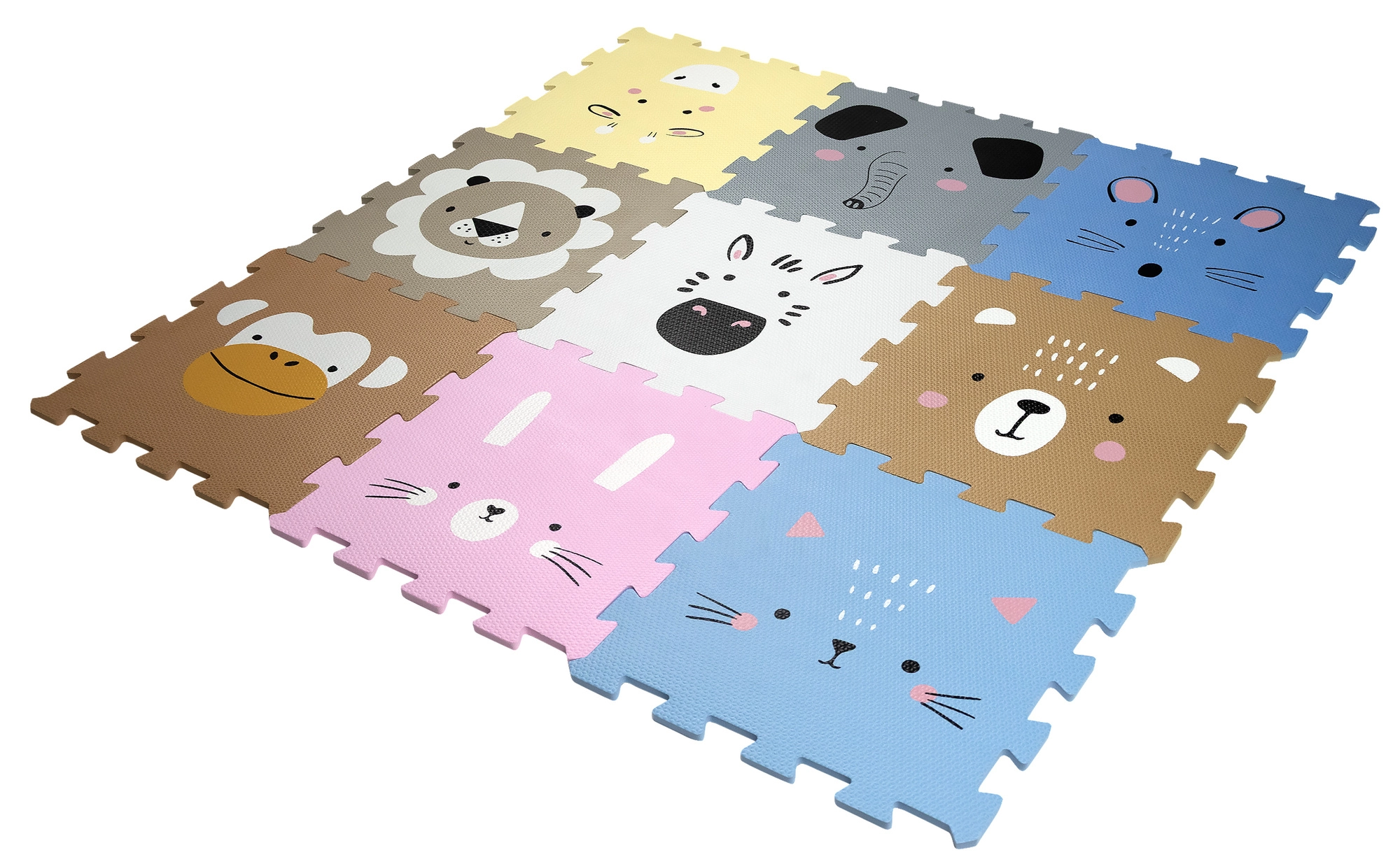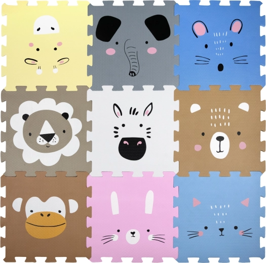 Създайте за децата безопасно и игриво място с пяната подложка HUMBI. Девет големи пъзел части с чаровни животни образуват мека, антхлъзгаща и топлоизолираща повърхност с размер 120 × 120 cm. Качествената EVA пяна без фталати, формамид, BPA и PVC омекотява ударите и предпазва от студен под.