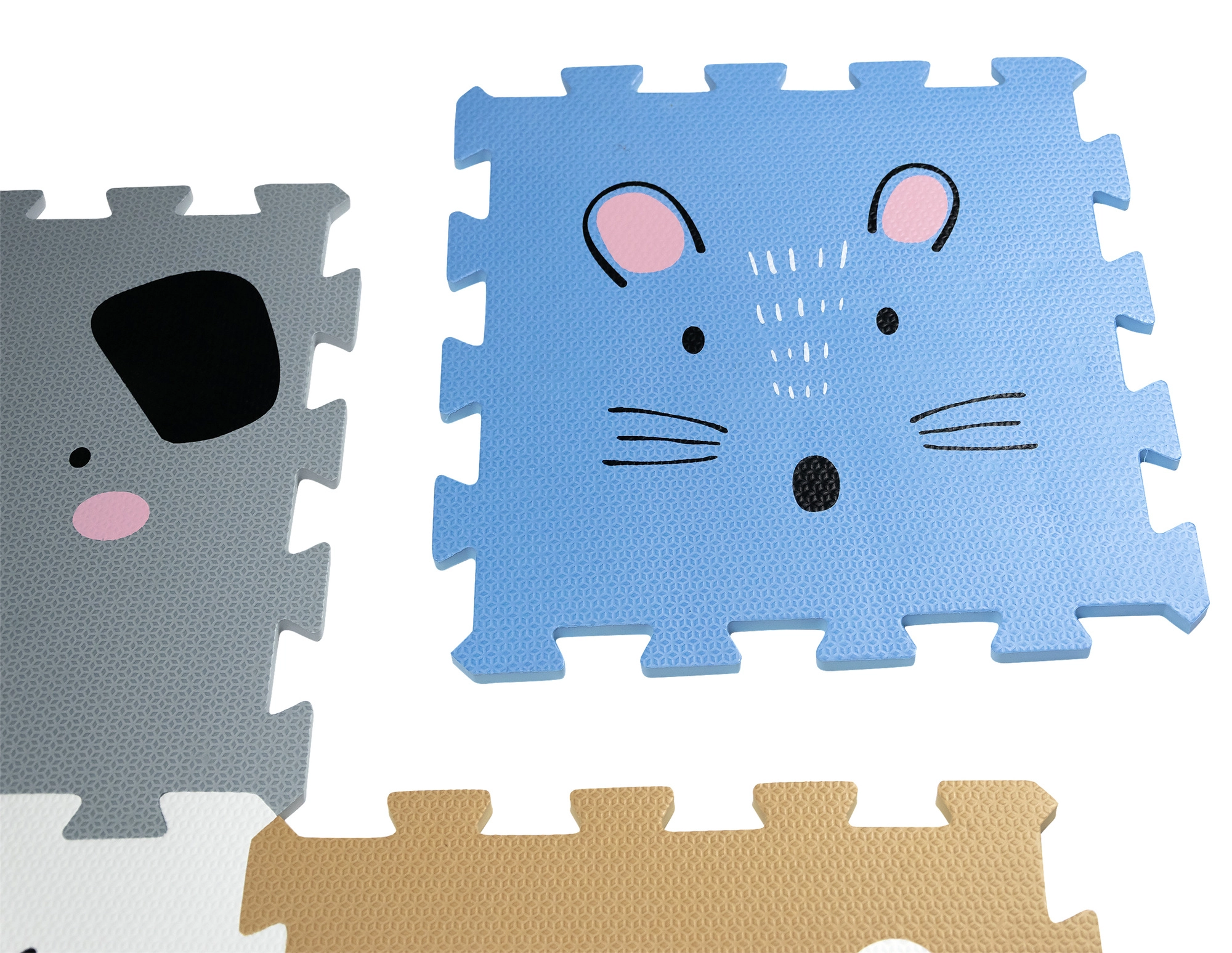 Подложката е изработена от издръжлива EVA пяна без вредни вещества, щадяща както децата, така и подовете. Почиства се лесно, сглобява и разглобява бързо и може да се адаптира към пространството според нуждите.