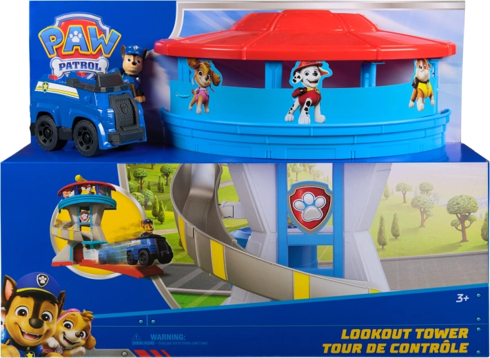 Голямата кула за наблюдение е центърът на всички мисии в Adventure Bay. Децата лесно пресъздават любимите сцени от ПЕС ПАТРУЛ благодарение на умните функции: асансьорът при издигане трансформира Чейс в екшън версия, спираловидната пързалка го изпраща право към автомобила, а изстрелващата рампа светкавично стартира спасителното действие.