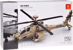 Този технически конструктор, вдъхновен от легендарната машина AH-64, предлага детайлен модел с типична форма на корпуса, подвесно въоръжение и ефектни стикери в стил „shark mouth“. Въртящите се главен и опашен ротор и прозрачният капак на кабината подчертават реалистичния вид и функционалността както за експониране, така и за екшън сценки.