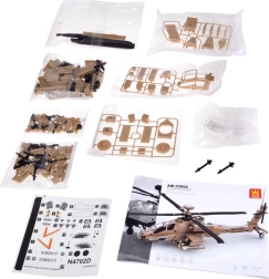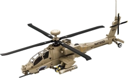 Сглобете емблематичния военен хеликоптер AH-64 от 259 здрави части и се насладете на страхотно забавление при строене и игра. Моделът предлага въртящи се ротори, реалистична пилотска кабина и стойки с въоръжение в атрактивна пустинна бежова цветова схема. Идеален за деца от 6+ , развива фината моторика, логическото мислене и креативността.