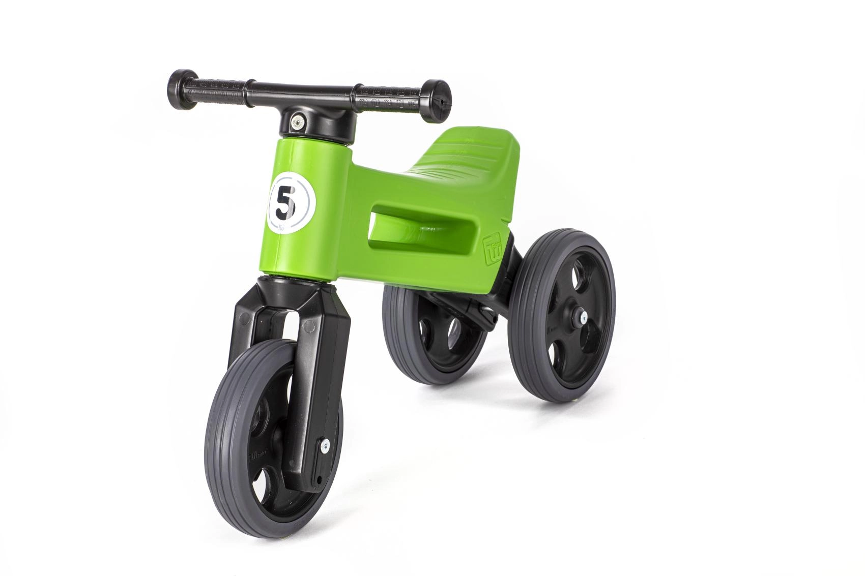 Лекото и издръжливо баланс колело Funny Wheels Rider Sport 2-в-1 расте заедно с вашето дете: за миг го преобразувате от триколка в двуколка, предлага две височини на седалката, тихи, неплъзгащи се гуми и безопасен дизайн за малки ездачи от 18 месеца.
