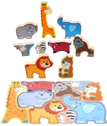Пъзелът съдържа цветни животински фигурки, които привличат вниманието на всяко дете и стимулират въображението му.