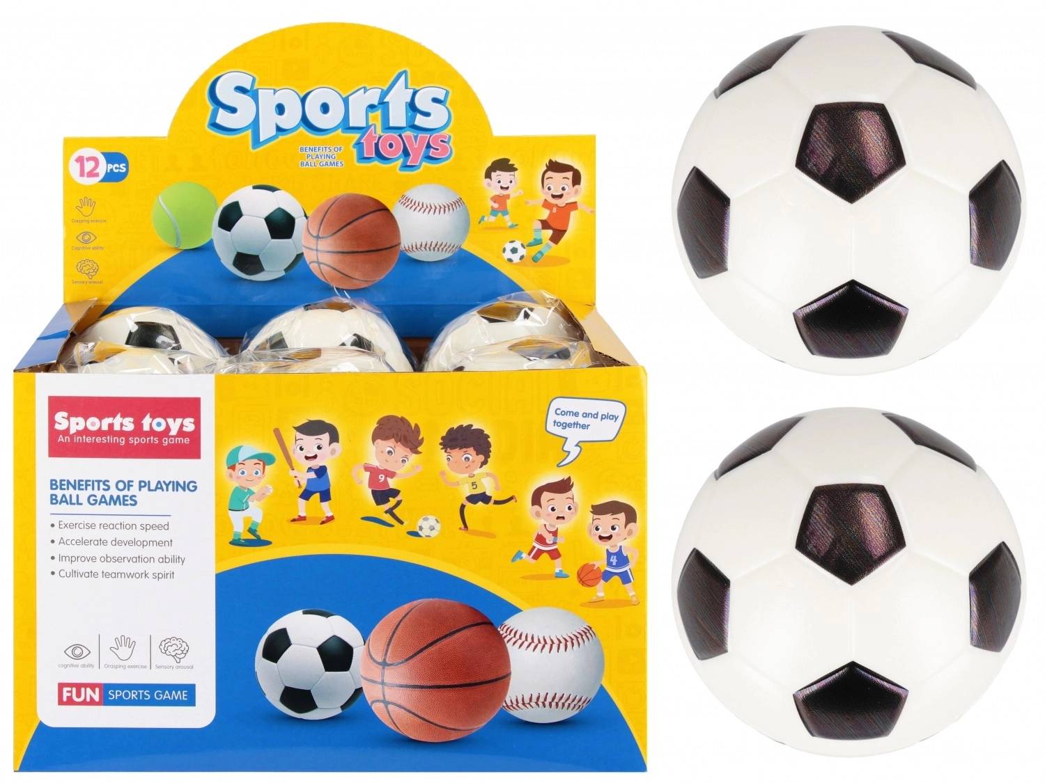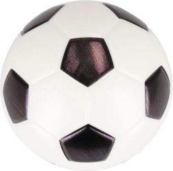 Компактният диаметър 10 см позволява лесно хващане от детски ръце и помага за тренировка на точността, координацията и моториката. Класическият черно‑бял изглед ще зарадва малки и големи фенове на футбола.
