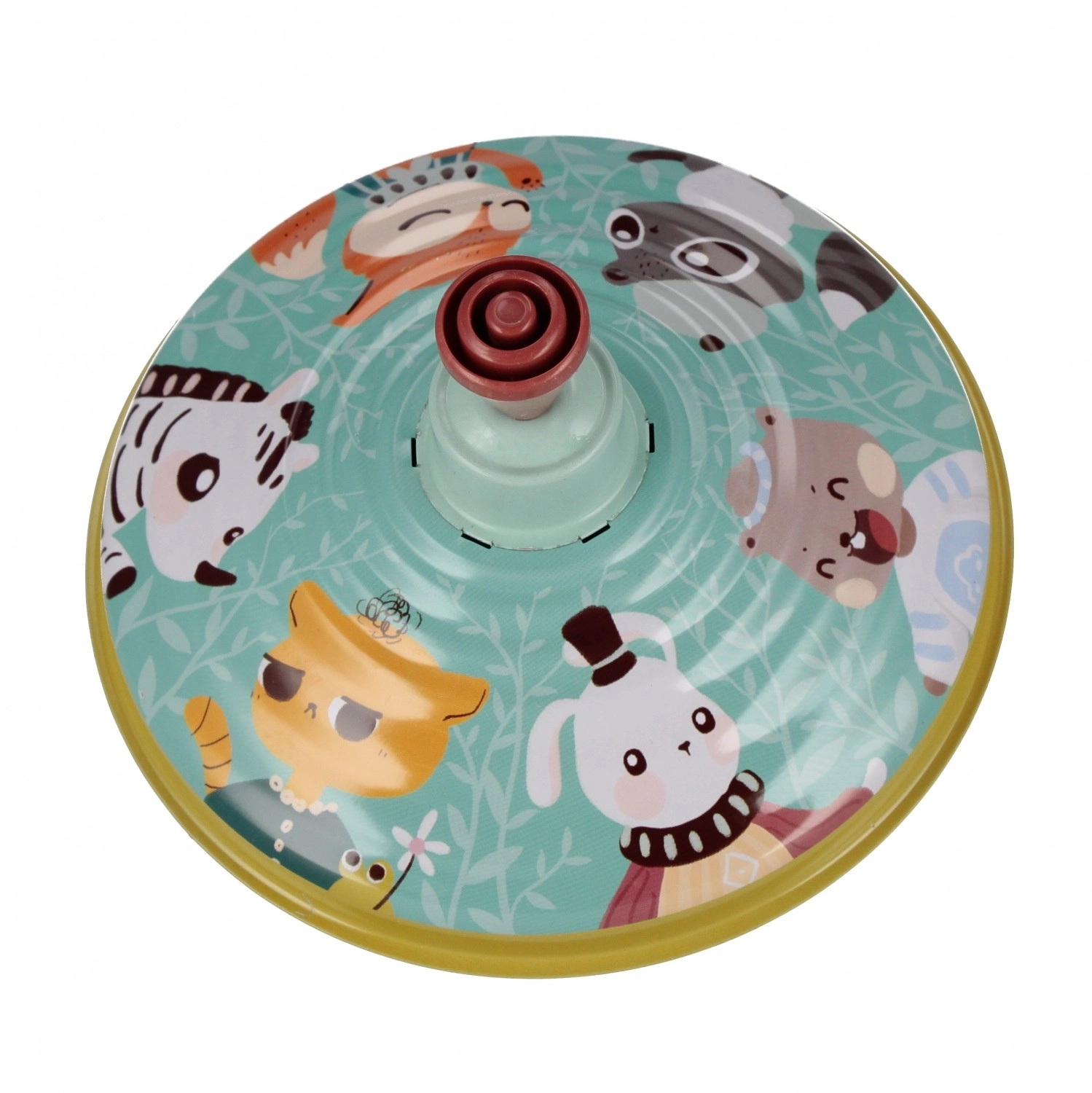 Устойчивото метално тяло с цветни илюстрации на животни съчетава традиционно качество с модерен вид – идеално за ежедневна игра.