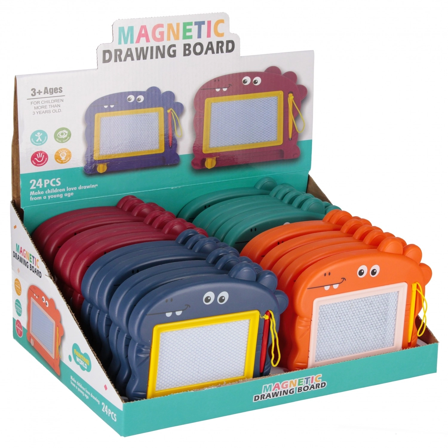 Забавна и практична магнитна дъска за рисуване за деца, която развива креативността и фината моторика. С включеното магнитно писец малките артисти могат да пишат, рисуват и с един плъзгач бързо да изтриват всичко. Лекото и лесно преносимо изпълнение е идеално за у дома и за път. Микс от цветове, изпраща се на случаен принцип. Подходящо за деца от 3 години. Цена за 1 брой.