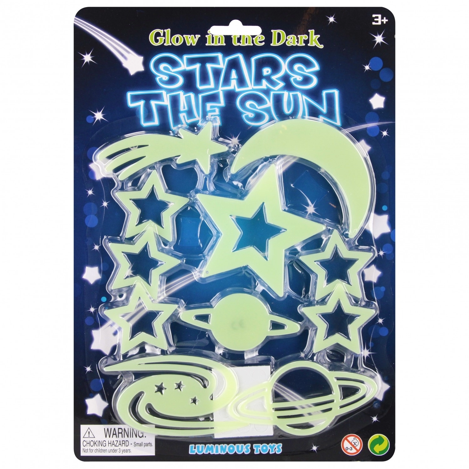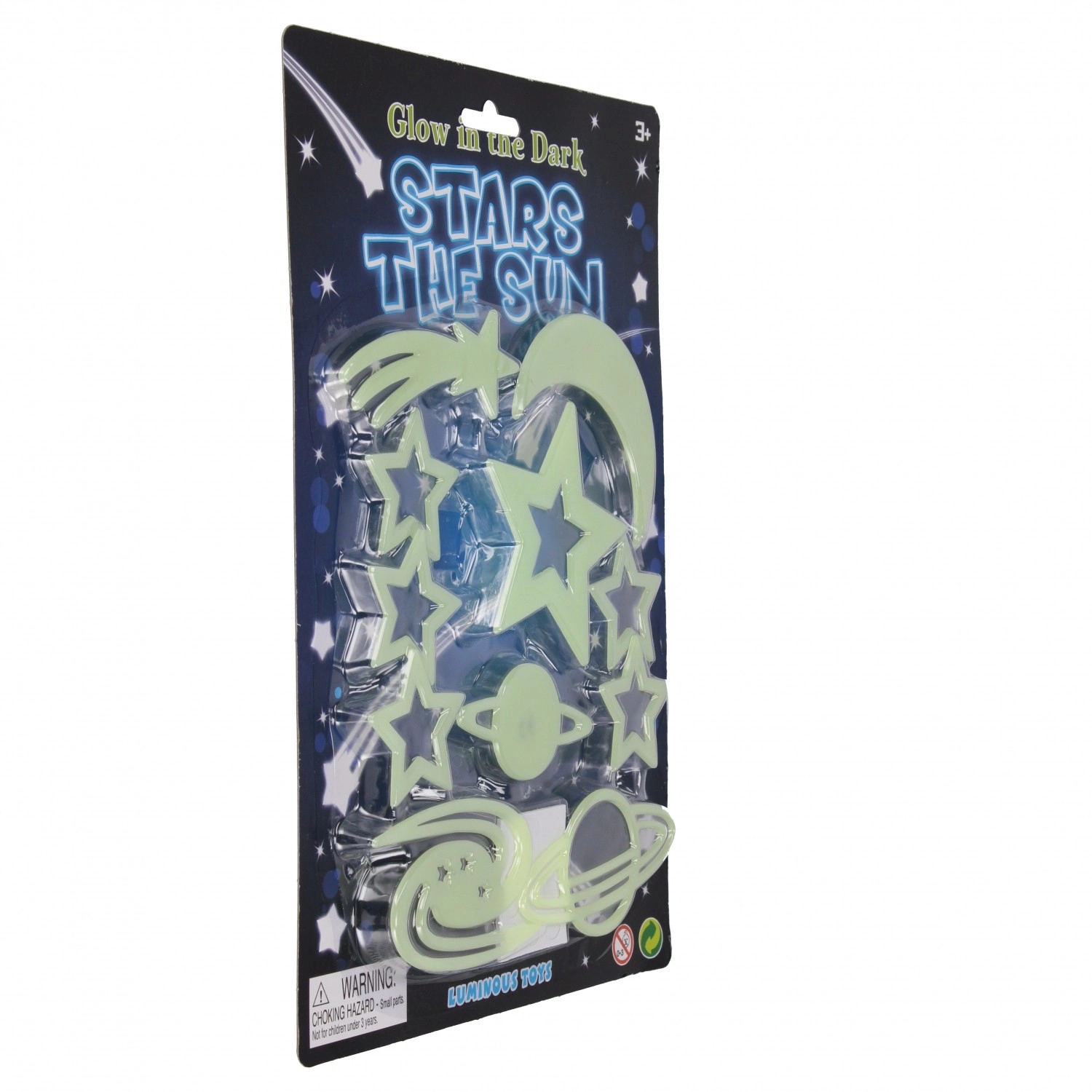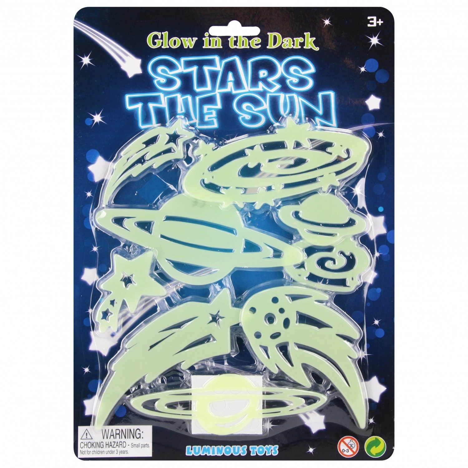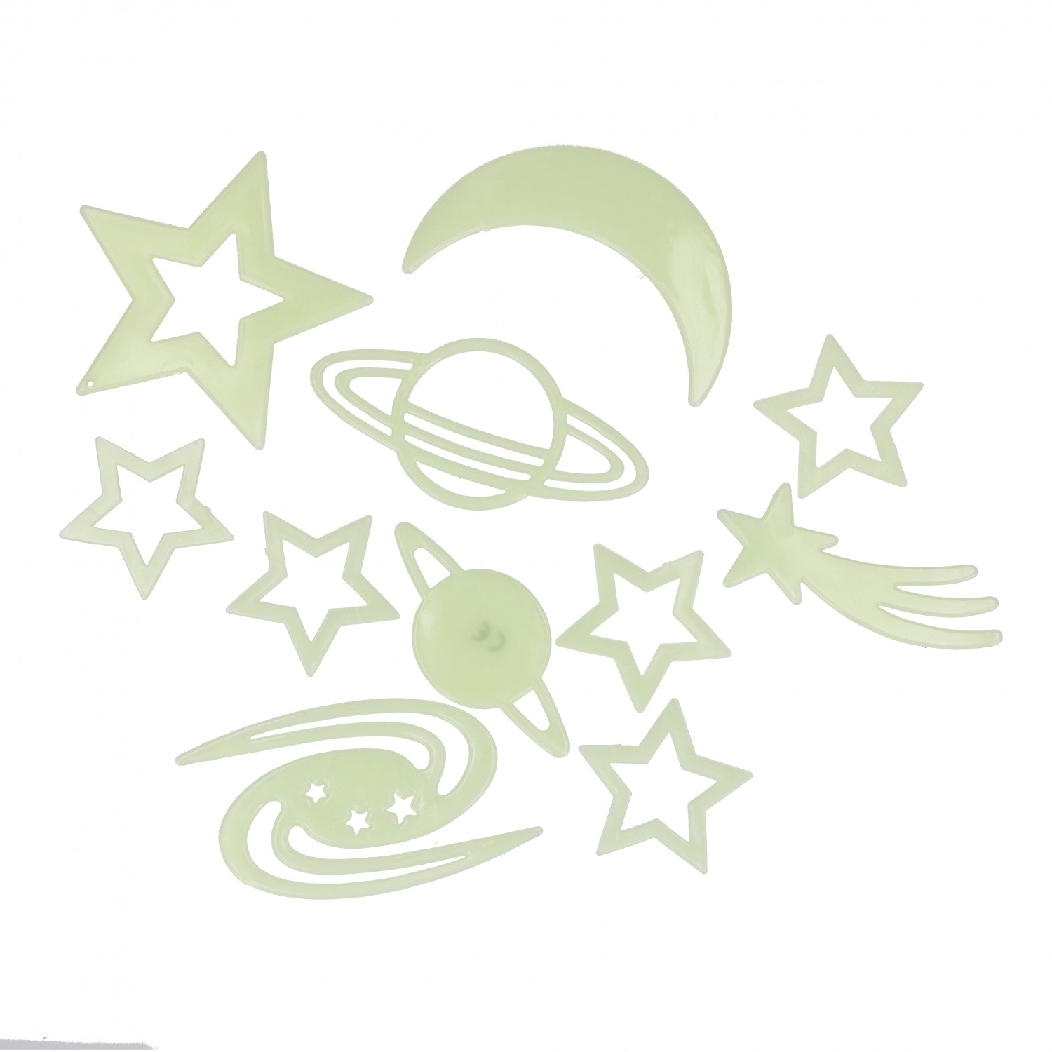 Превърнете детската стая в малък космос! Тези флуоресцентни космически декорации красиво светят в тъмното, лесно се лепят на стена и таван и реагират на UV светлина. Микс от мотиви – планети, звезди и други форми. Подходящи за деца от 3 години. Цената е за брой.