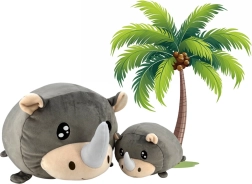 Очарователен сет от плюшени носорози – мама и бебе – ще зарадва децата от раждането. Играчките от много мека плюшена материя са безопасни, нежни и идеални за гушкане, игра и като декорация. По-малкият 20 см е чудесен приятел за най-малките, а по-големият 40 см служи като възглавничка за път. Мека плюш, везани детайли без твърди части, перат се на 30 °C и подходящи от 0 месеца.
