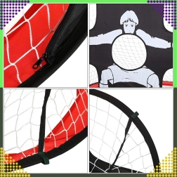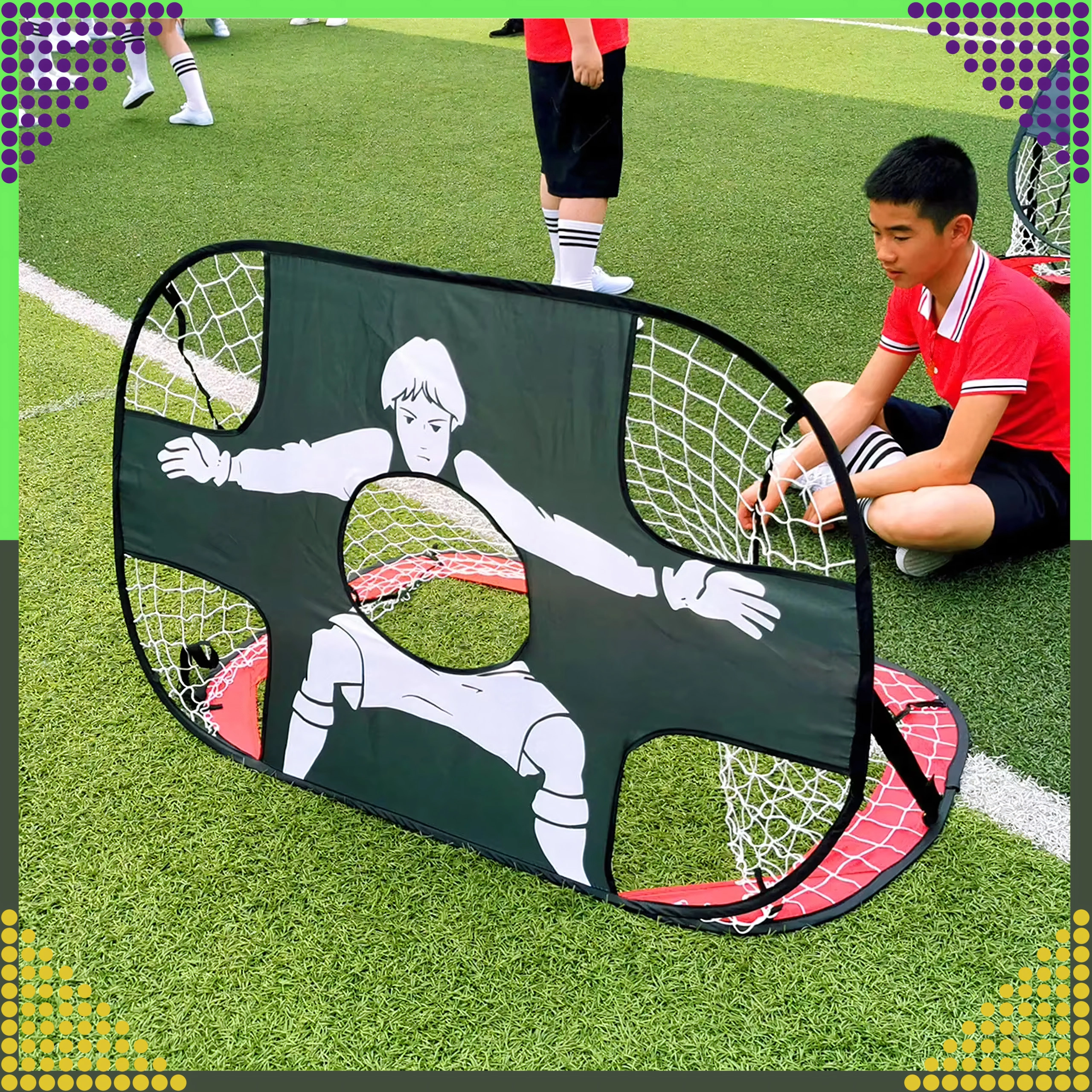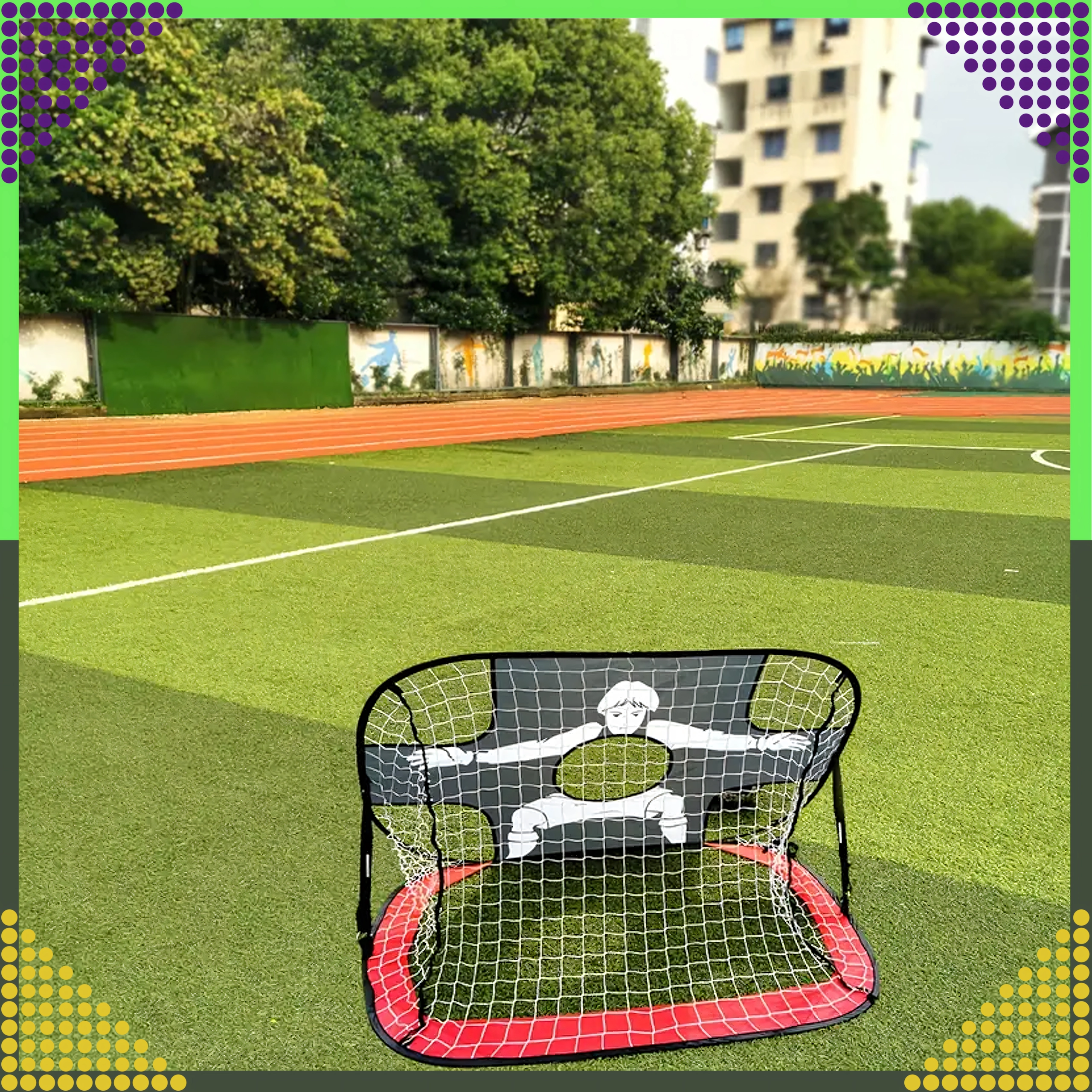 Издръжливи материали, гъвкава рамка и странични мрежи осигуряват стабилност дори при повтарящи се удари. Вратата е идеална за домашни тренировки, малки мачове и целенасочени дрили с деца. Ползвайте я на трева, изкуствен терен или в парка.