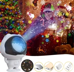 Компактният проектор във форма на астронавт със стабилна стойка е подходящ за маса, рафт или перваз и чудесно допълва зимната украса.