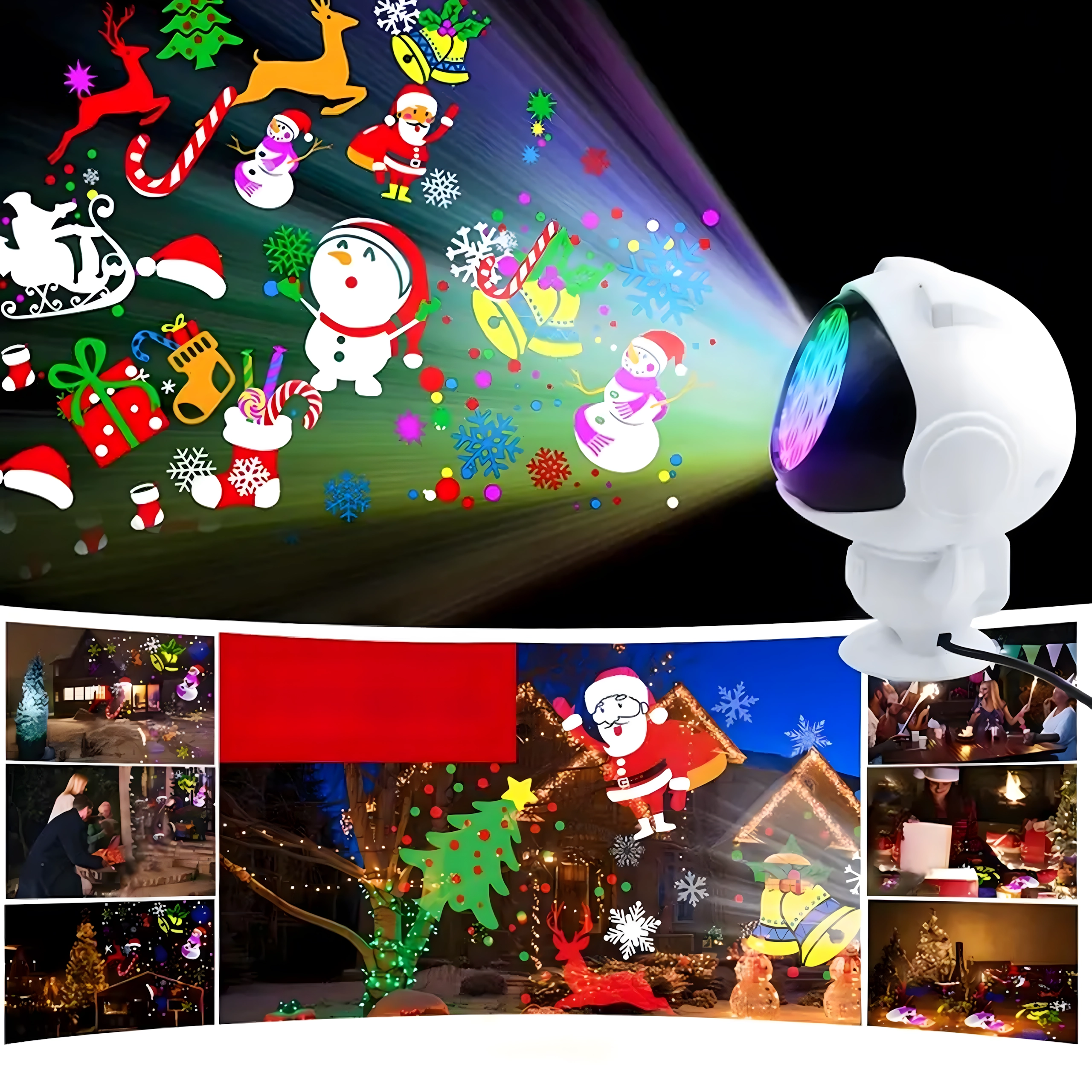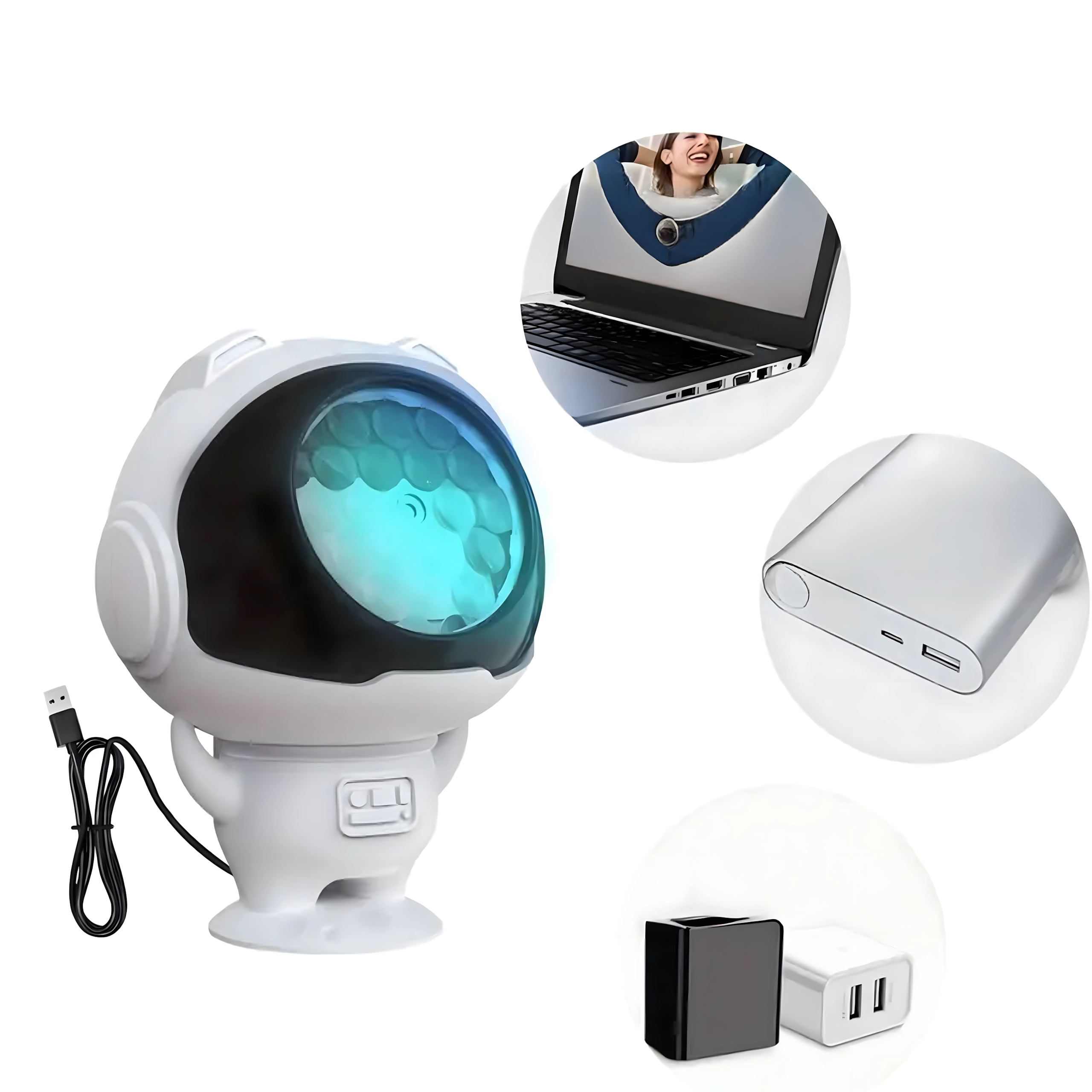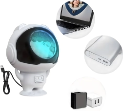 Създайте у дома вълшебна атмосфера по празниците и през цялата година. Астронавтската прожекционна лампа с цветни шарки изпълва стените и тавана с весели мотиви и внася приятно осветление в интериора. Благодарение на компактните размери и стабилната стойка лесно я поставяте на маса, скрин или перваз.