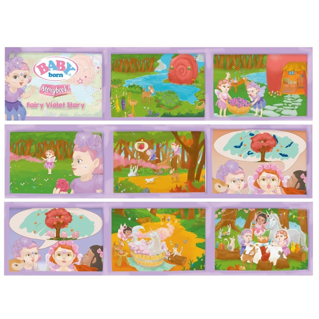 Куклата BABY born Люлякова фея носи собствен приказен свят с интерактивна сцена и вълшебна книжка.