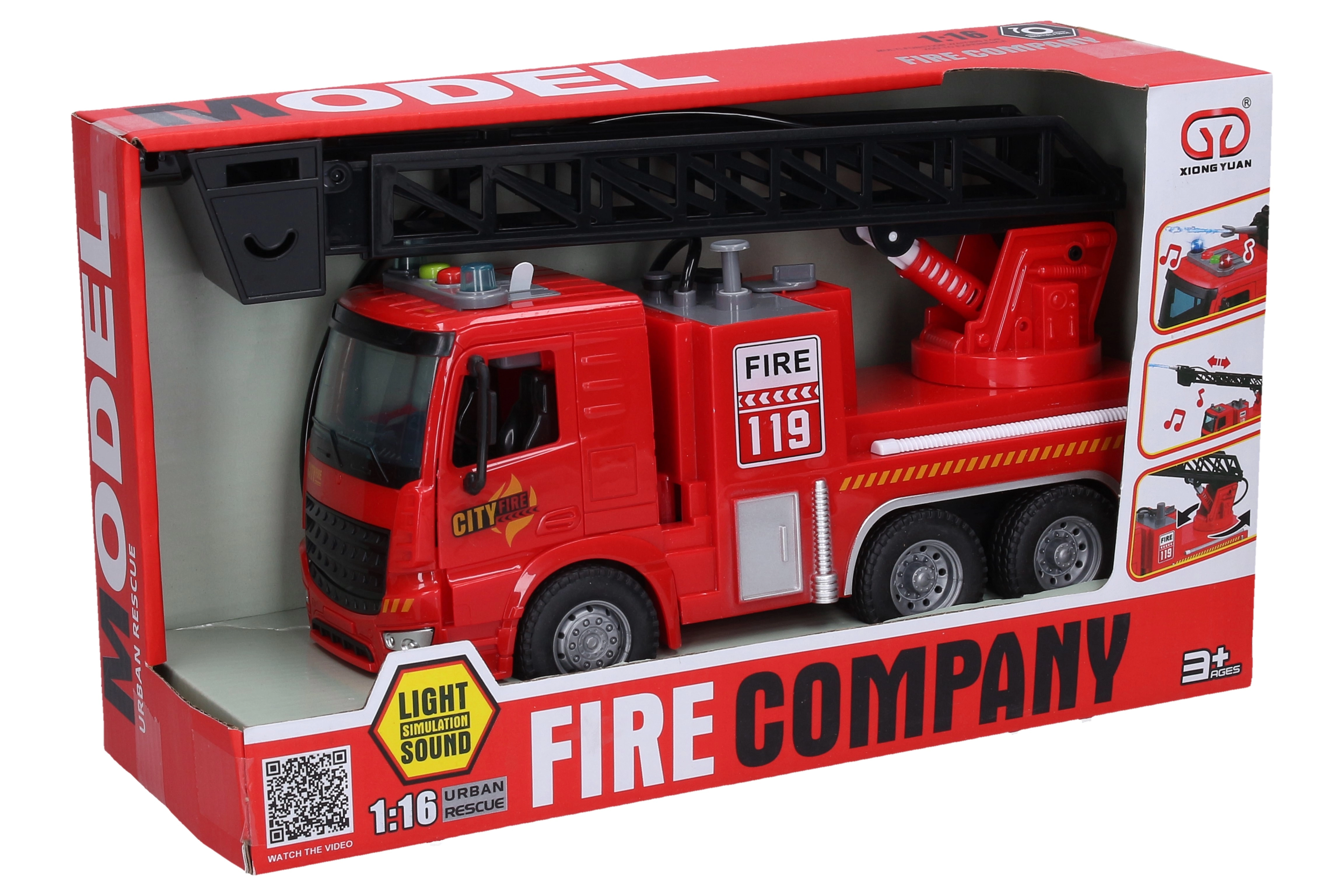 Насладете се на вълнуващи спасителни мисии с пожарната кола, която комбинира реалистични функции и лесно управление. Благодарение на вградения воден резервоар, скрит вътре в цистерната, тя наистина пръска вода – достатъчно е да напълните през капачката на покрива и да натиснете бутона на резервоара.